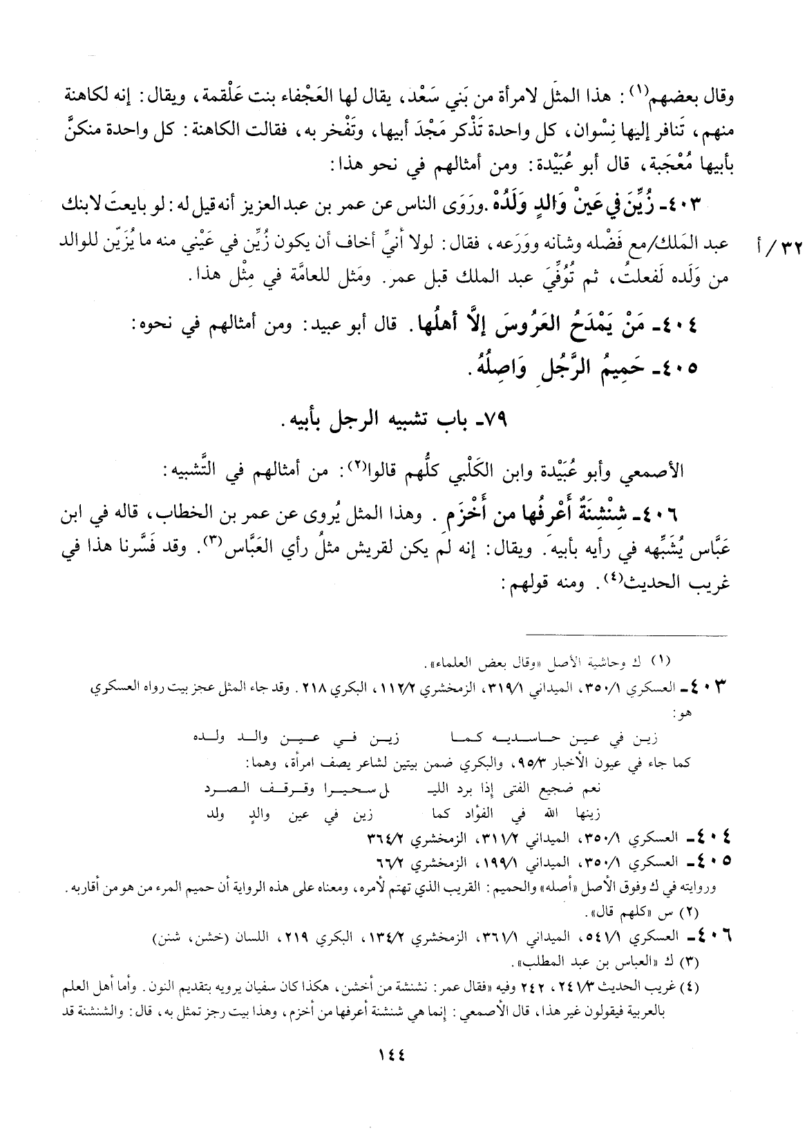الأصمعي وأبو عبيدة وأبن الكلبي كلهم قالوا: من أمثالهم في التشبيه: شنشنة اعرفها من أخزم.