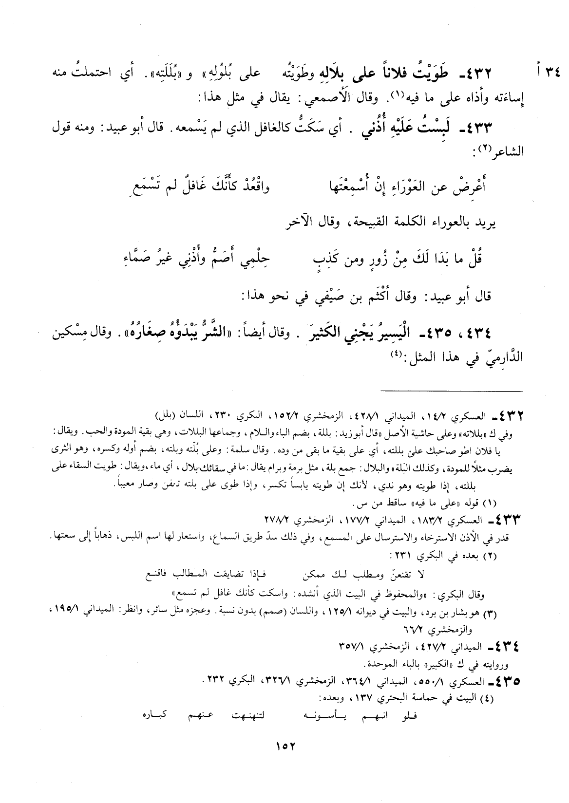 طويت فلان على بلاله وطويته على بلوله وبللته. أي احتملت منه إساءته وأذاه على ما فيه. وقال الأصمعي: يقال في مثل هذا: لبست عليه أذني.