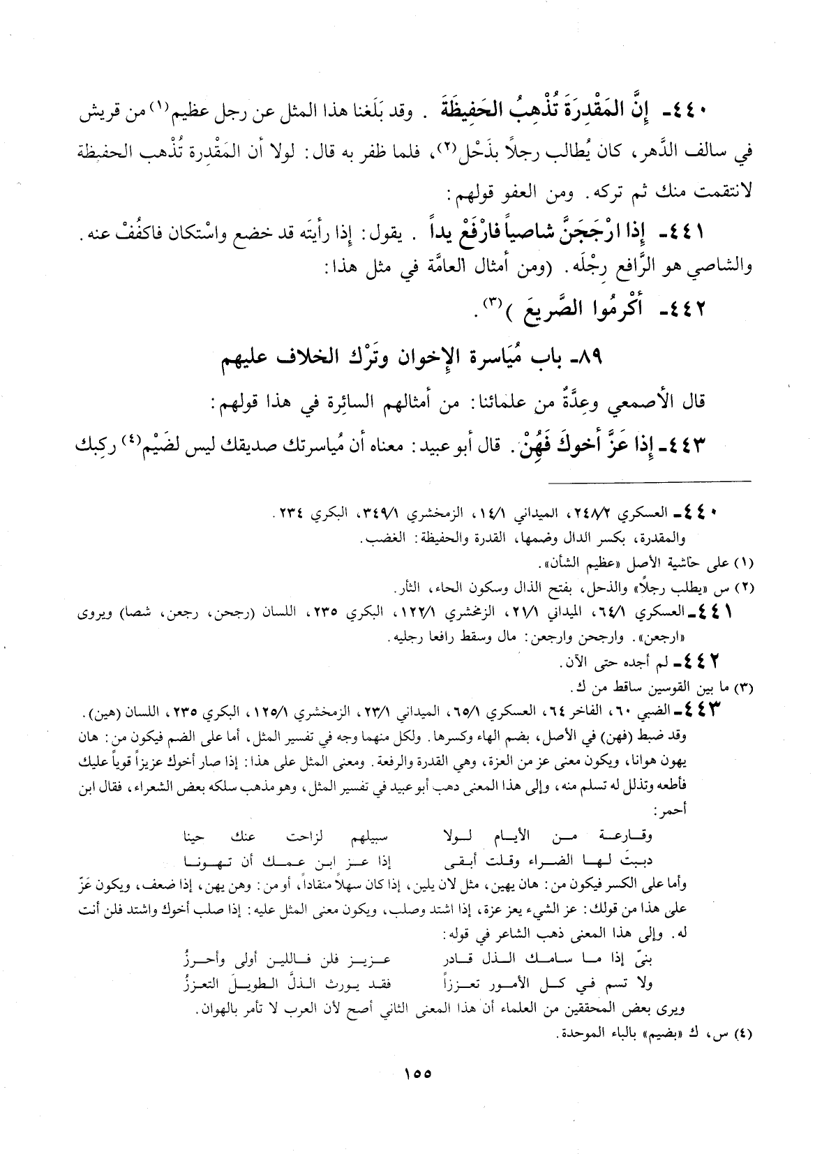 قال الأصمعي وعدة من علمائها: من أمثالهم السائرة في هذا قولهم: إذا عز أخوك فهن.