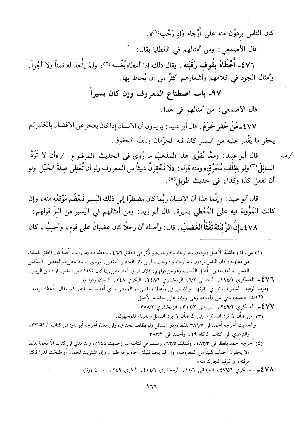 كان الناس يردون منه على أرجاء وادٍ رحب " قال الأصمعي: ومن أمثالهم في العطايا يقال: أعطاه بقوف رقبته يقال ذلك إذا أعطاه بغيته، ولم يأخذ له ثمناً ولا أجراً. وأمثال الجود في كلامهم وأشعارهم أكثر من يخاط بها.