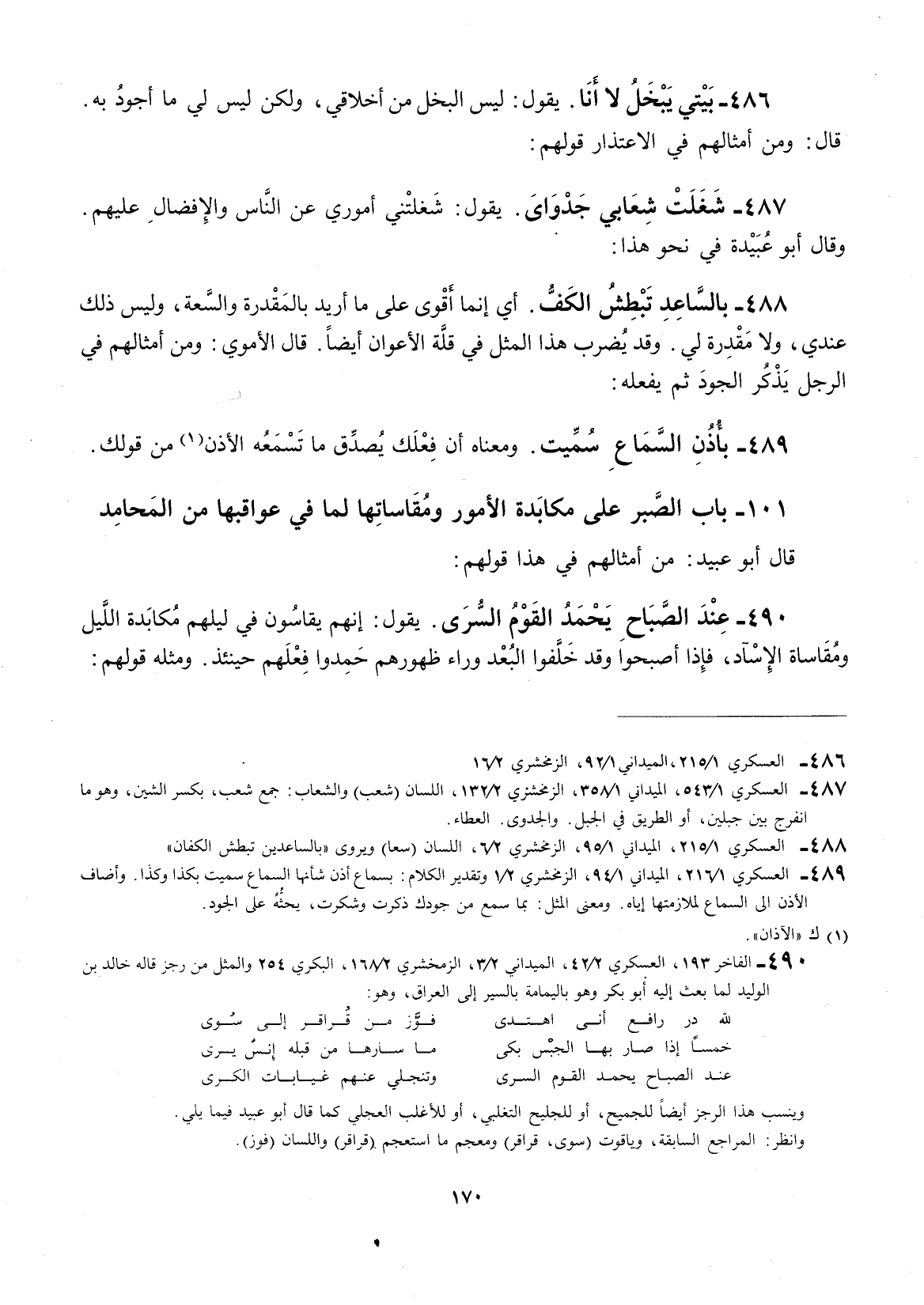 قال: ومن أمثالهم في الاعتذار قولهم: شغلت شعابي جدواي.