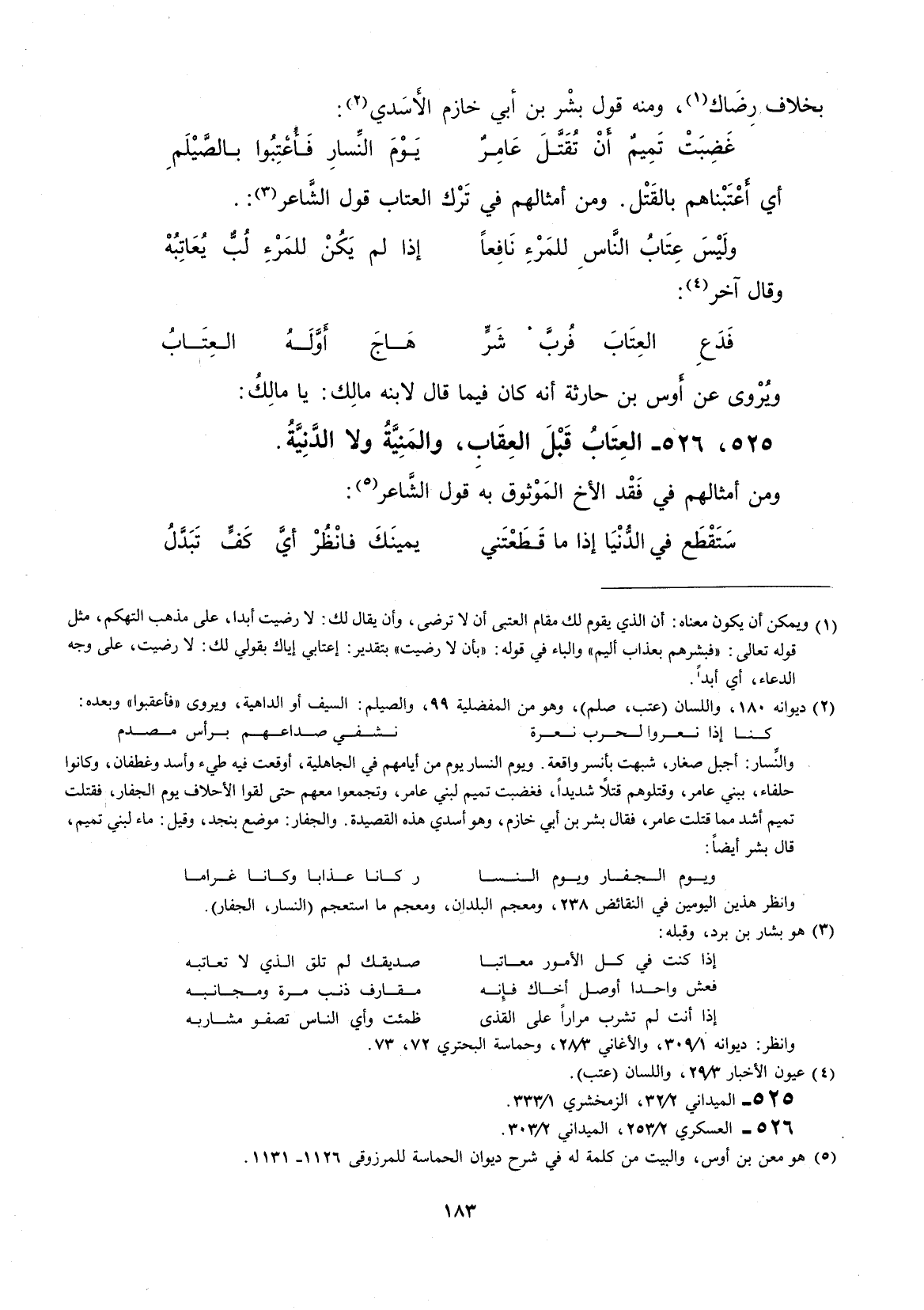 أي أعتبناهم بالقتل. ومن أمثالهم في ترك العتاب قول الشاعر: