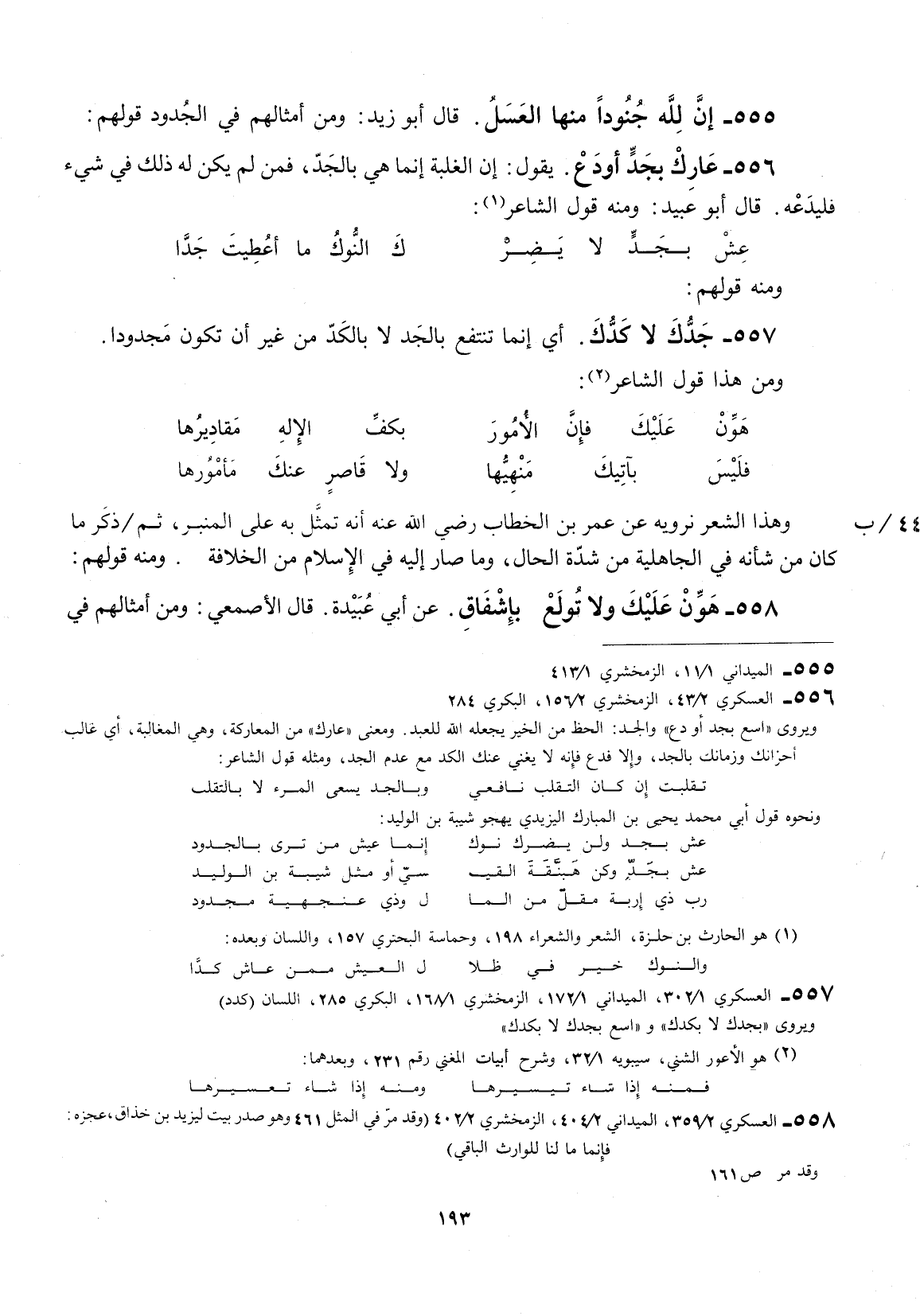 وهذا الشعر نرويه عن عمر بن الخطاب رضي الله عنه إنّه على المنبر، ثم ذكر ما كان من شانه في الجاهلية من شدة الحال، وما صار إليه في الإسلام من الخلافة. ومنه قولهم: هون عليك ولا تولع بإشفاق.
