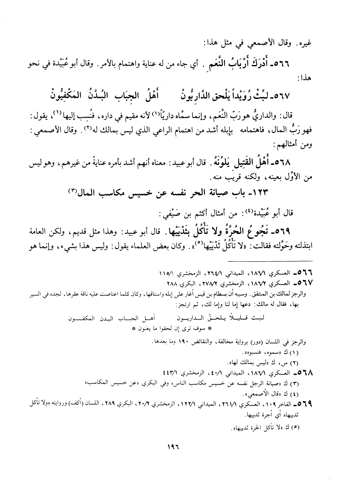 قال: والداري هو رب النعم، وإنّما سماه دارياً لأنه ميم في داره، فنسب إليها، ويقول: فهو رب المال، فاهتمامه بأبله اشد من اهتمام الراعي الذي ليس بمالك له. وقال الأصمعي: ومن أمثالهم: أهل القتيل يلونه.