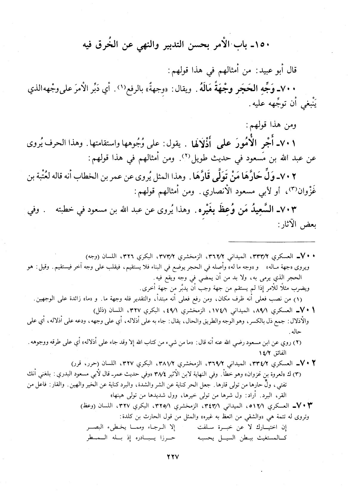 قال أبو عبيد: من أمثالهم في هذا قولهم: وجه الحجر وجهة ماله.