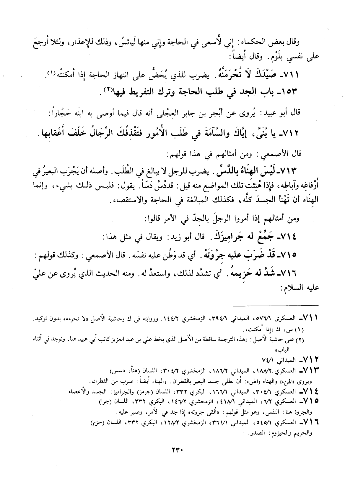 وقال بعض الحكماء: إني لأسعى في الحاجة وإني منها ليائس، وذلك للأعذار، لئلا أرجع على نفسي بلوم. وقال أيضاً: صيدك لا تحرمنه.