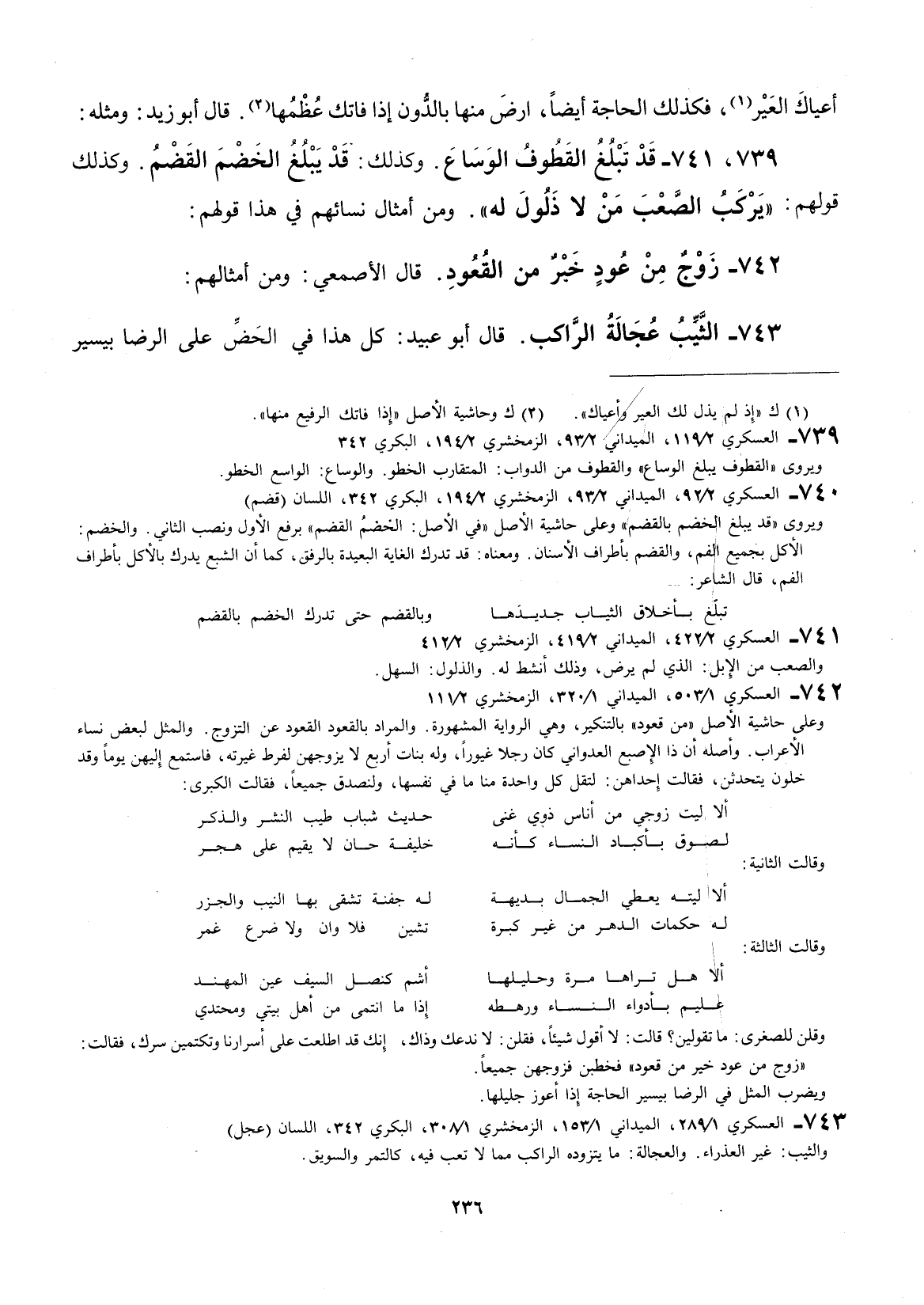 قال الأصمعي: ومن أمثالهم: الثيب عجالة الراكب.