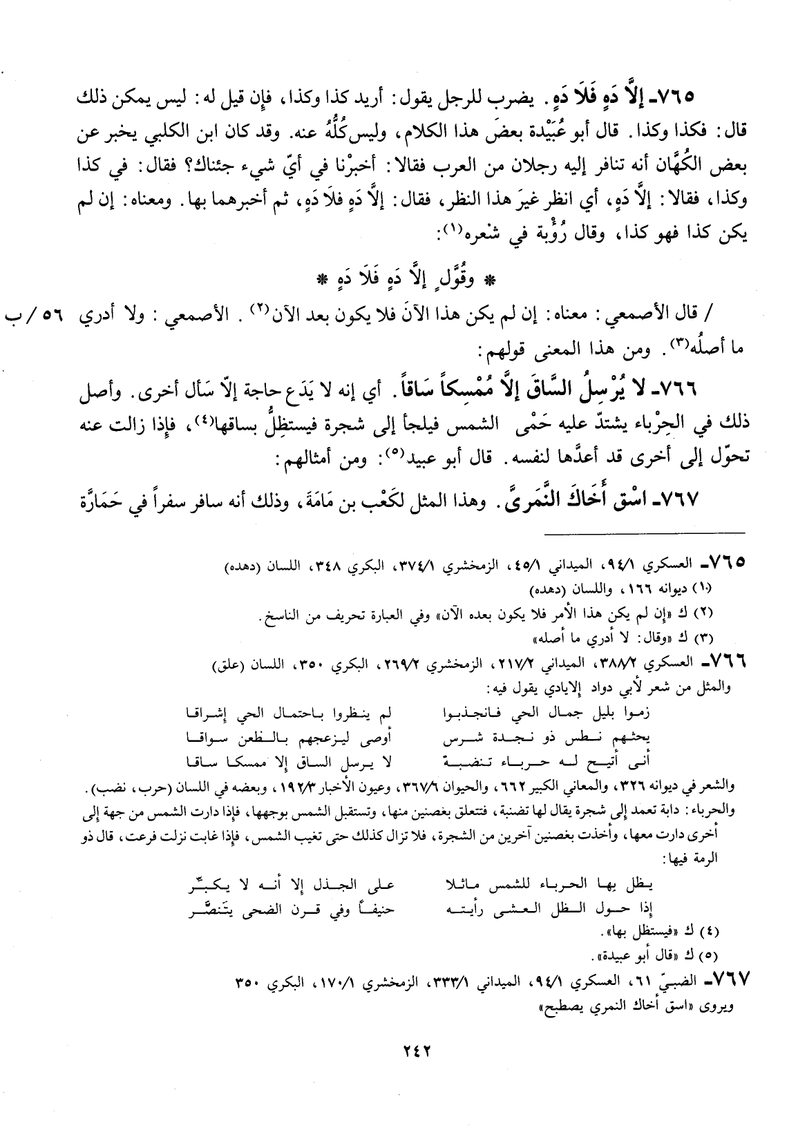 يضرب للرجل يقول: أريد كذا وكذا، فإنَّ قيل له: ليس يمكن ذلك قال: فكذا وكذا. قال أبو عبيد بعض هذا الكلام، وليس كله عنه. وقد كان أبن الكلبي يخبر عن بعض الكهان إنّه سافر إليه رجلان من العرب فقالا: أخبرنا في أي شيء جئناك؟ فقال: في كذا وكذا، فقالا: إلاّ دهٍ، أي أنظر غير هذا النظر، فقال: إلاّ دهٍ فلا دهٍ، ثم أخبرهما بها. ومعناه: إنَّ لم يكن كذا وكذا فهو كذا، وقال روبة في شعره: وقول إلاّ دهٍ فلا دهٍ قال الأصمعي: معناه: إنَّ لم يكن هذا الأن فلا يكون بعد الآن. الأصمعي: ولا أدري ما أصله. ومن هذا المعنى قولهم: لا يرسل الساق إلاّ ممسكا ساقا.