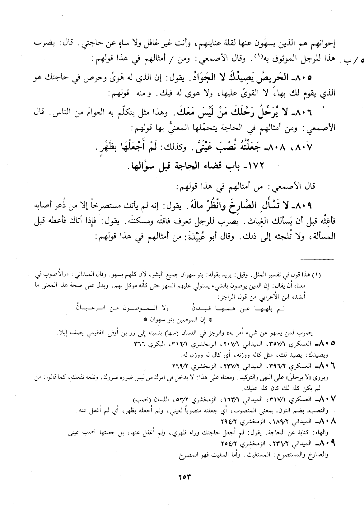 إخوانهم هم الذين يسهون عنها لقلة عنايتهم، وأنت غير غافل ولا ساهٍ عن حاجتي. قال: يضرب هذا للرجل الموثوق به. وقال الأصمعي: ومن أمثالهم في قولهم: الحريص يصيدك لا الجواد.