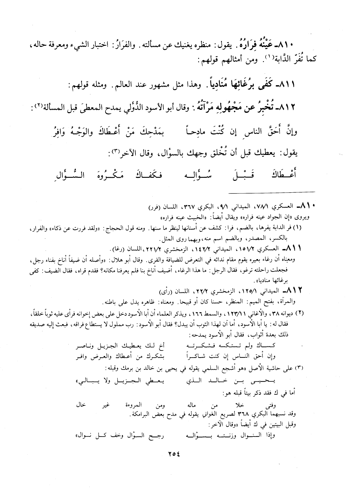 وهذا مثل مشهور عند العالم. ومثلهم قولهم: تخبر عن مجهوله مرآته: وقال أبو الأسود الدؤلي يمدح المعطي قبل المسألة: