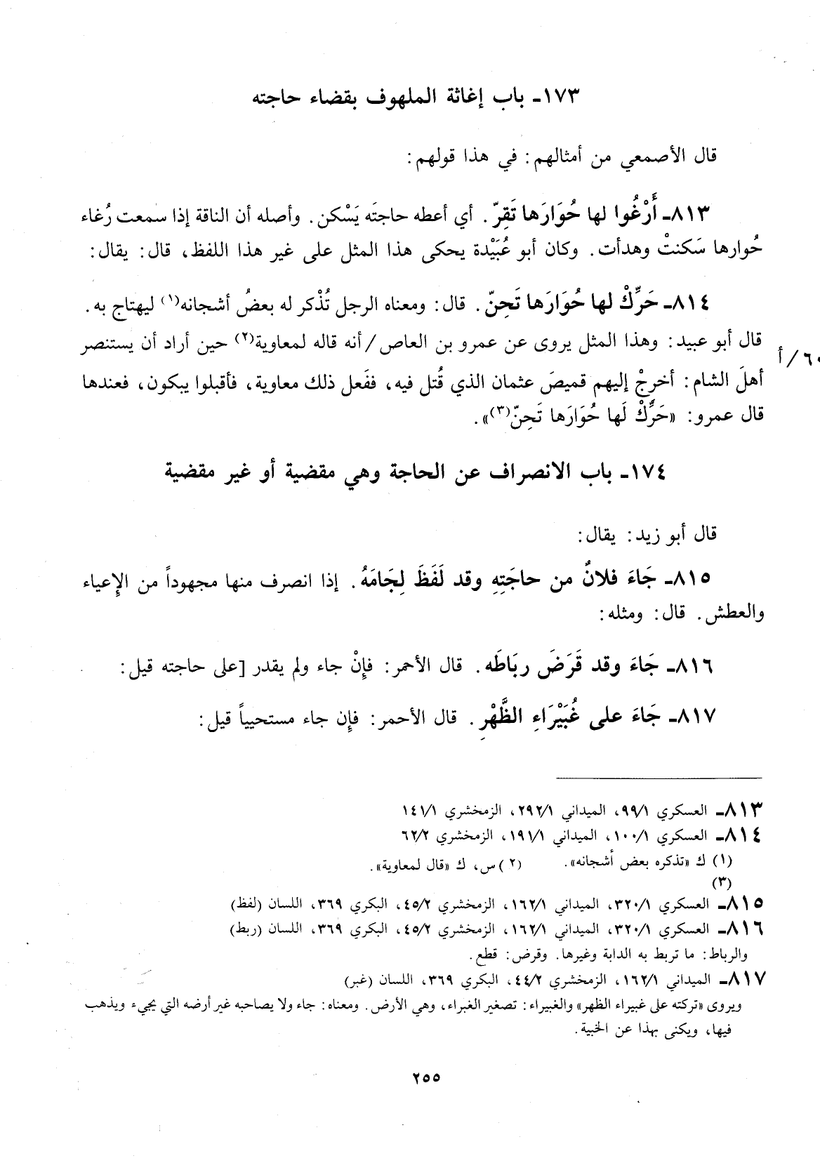 قال الأصمعي: من أمثالهم في هذا قولهم: أرغوا لها حوارها تقر.
