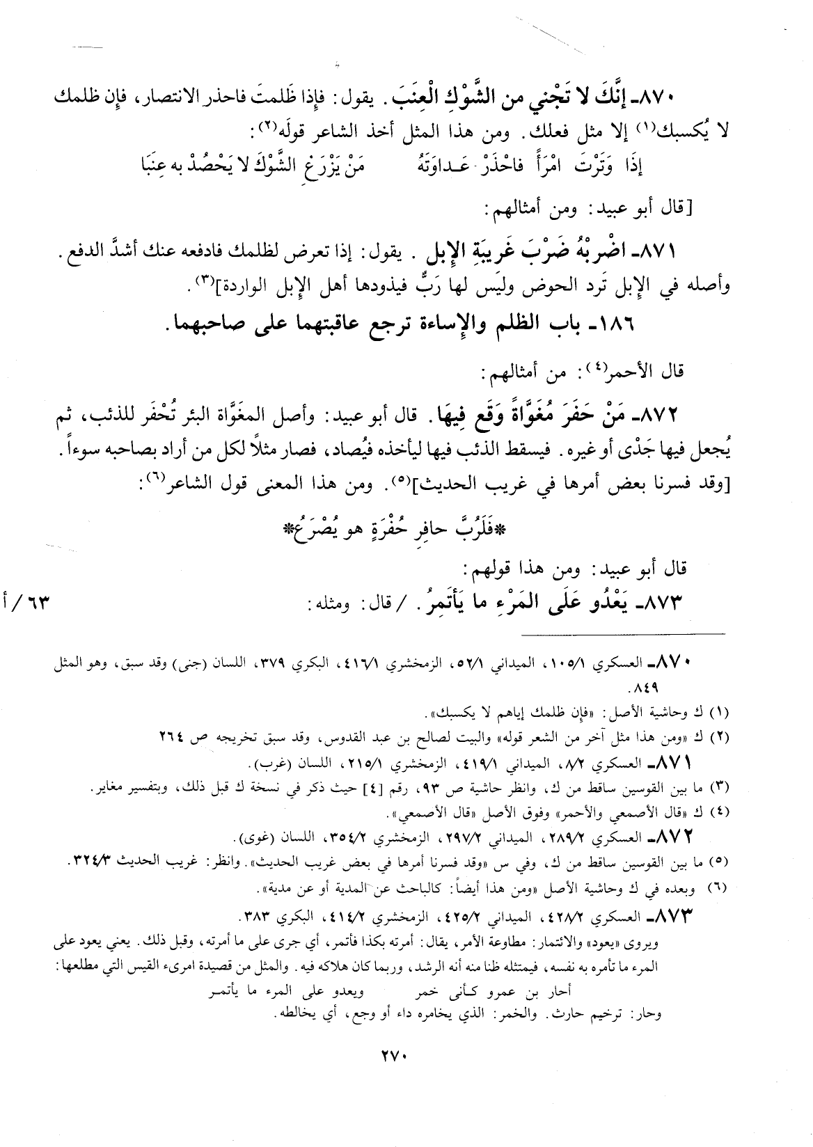 وقد فسرنا بعض أمرها في غريب الحديث. ومن هذا المعنى قول الشاعر: فلرب حافر حفرة هو يصرع.