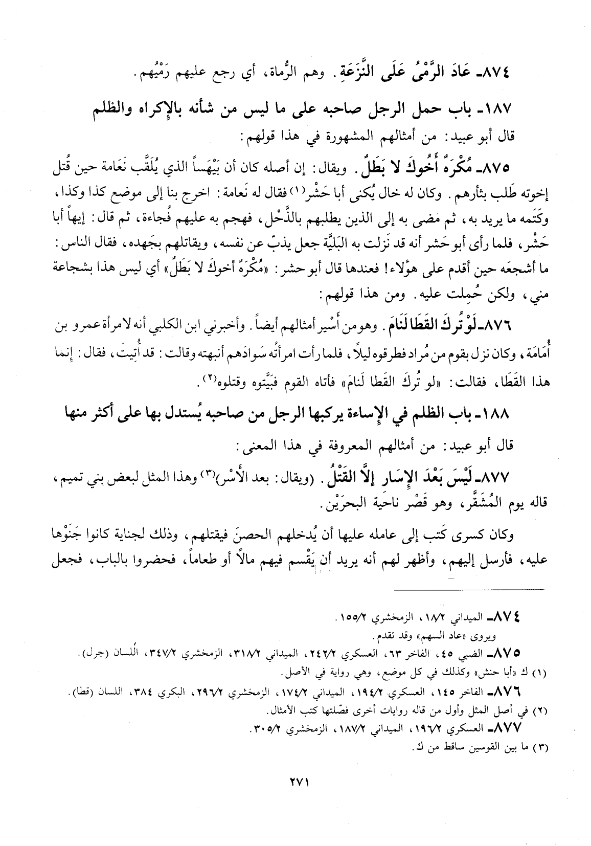 قال أبو عبيد: من أمثالهم المشهورة في هذا قولهم: مكره أخوك لا بطل.