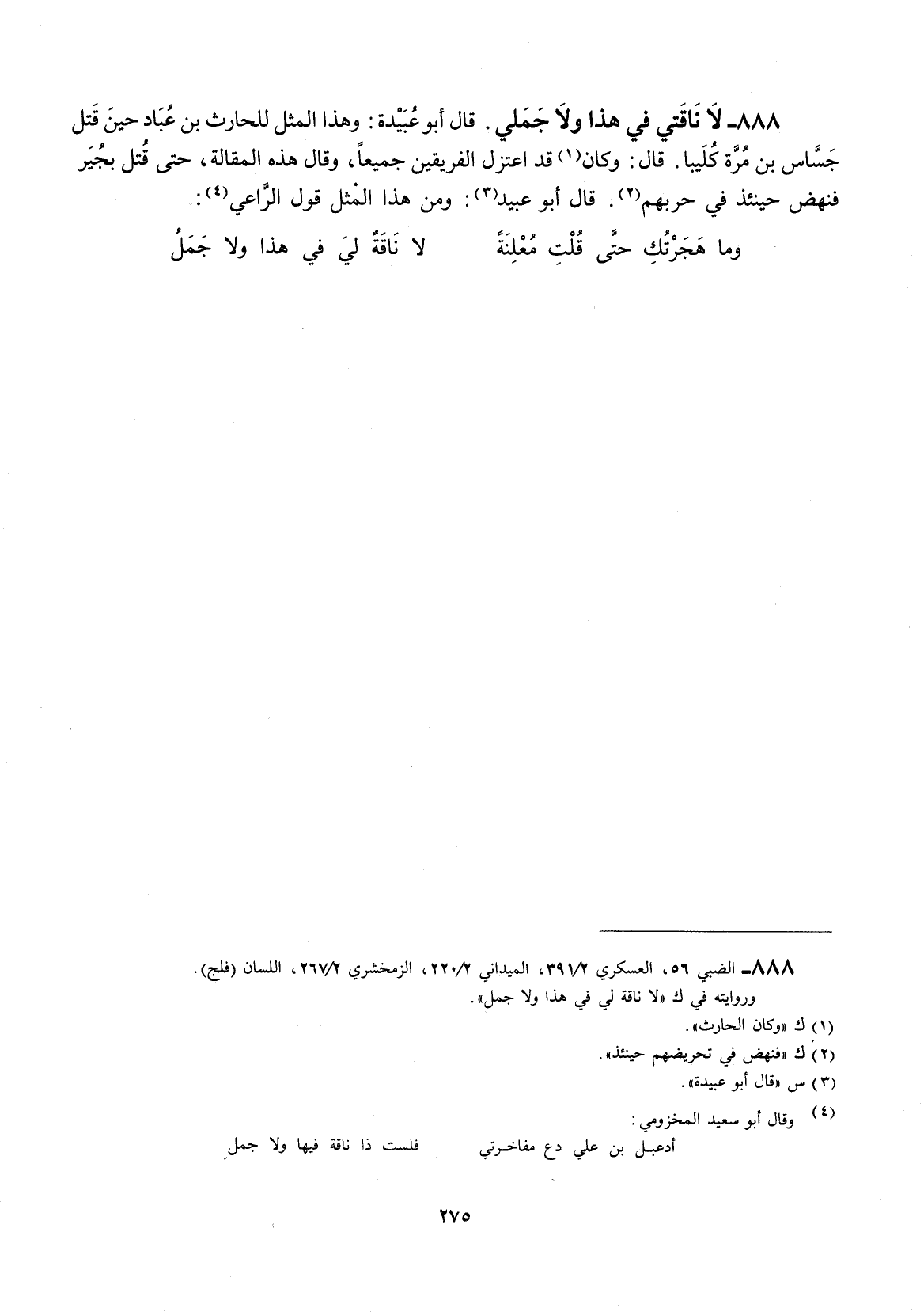 قال أبو عبيدة: وهذا المثل للحارث بن عباد حين قتل جساس بن رمة كليباً، قال: وكان قد أعتزل الفريقين جميعاً، وقال هذه المقالة، حتى قتل بجير فنهض حينئذ في حربهم. قال أبو عبيد: ومن هذا المثل قول الراعي: