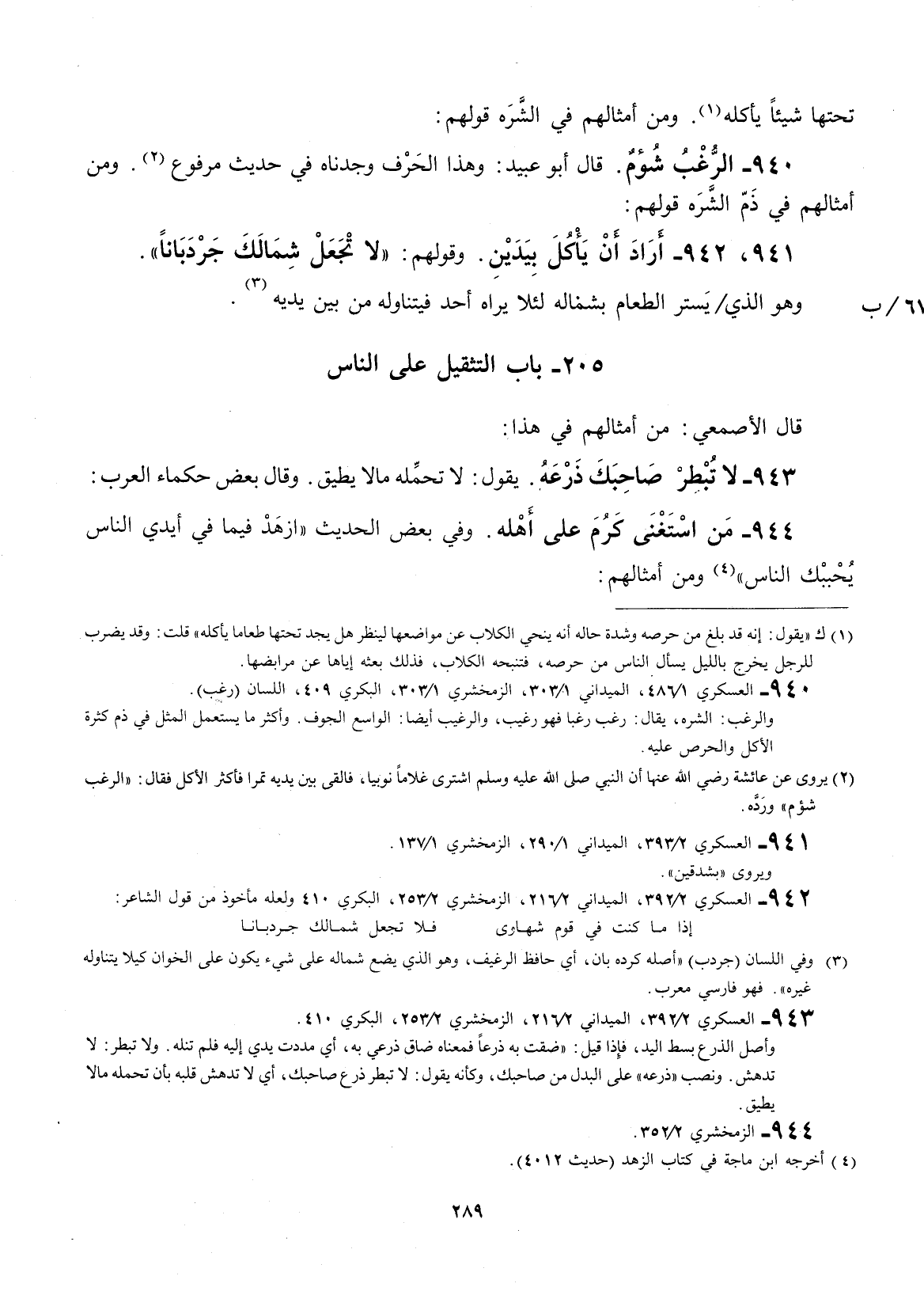 قال أبو عبيد: وهذا الحرف وجدناه في حديث مرفوع. ومن أمثالهم في ذم الشره قولهم: أراد إنَّ يأكل بيدين.