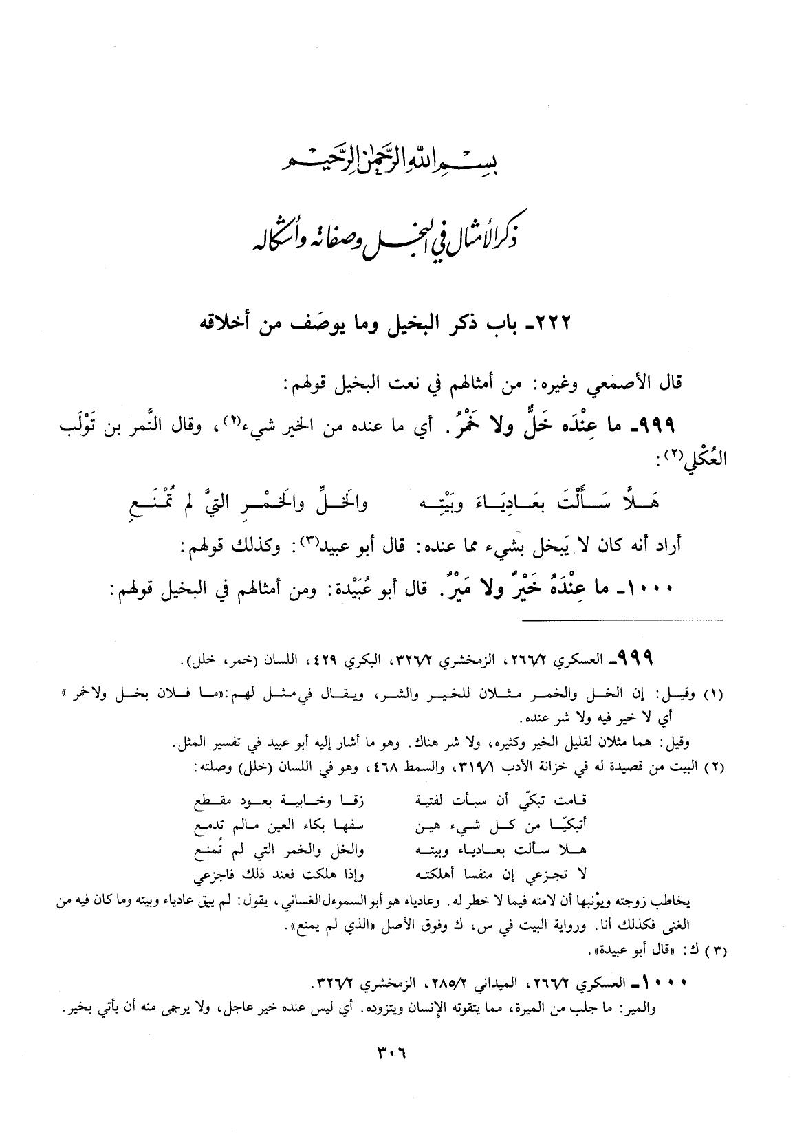 قال الأصمعي وغيره: من أمثالهم في نعت البخل قولهم: ما عنده خل ولا خمر.