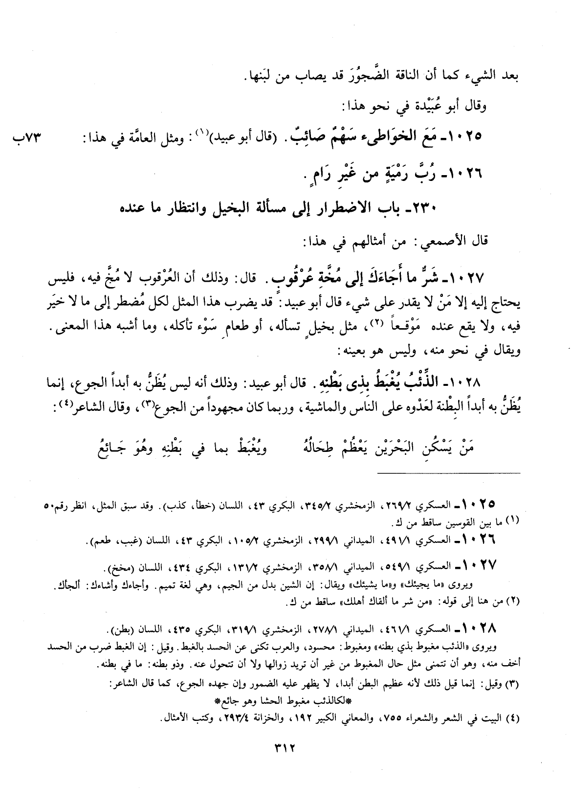 قال أبو عبيد: وذلك أنّه ليس يظن به أبداً الجوع، إنّما يظن به أبداً البطنة لعدوه على الناس والماشية، وربما كان مجهوداً من الجوع، وقال الشاعر: