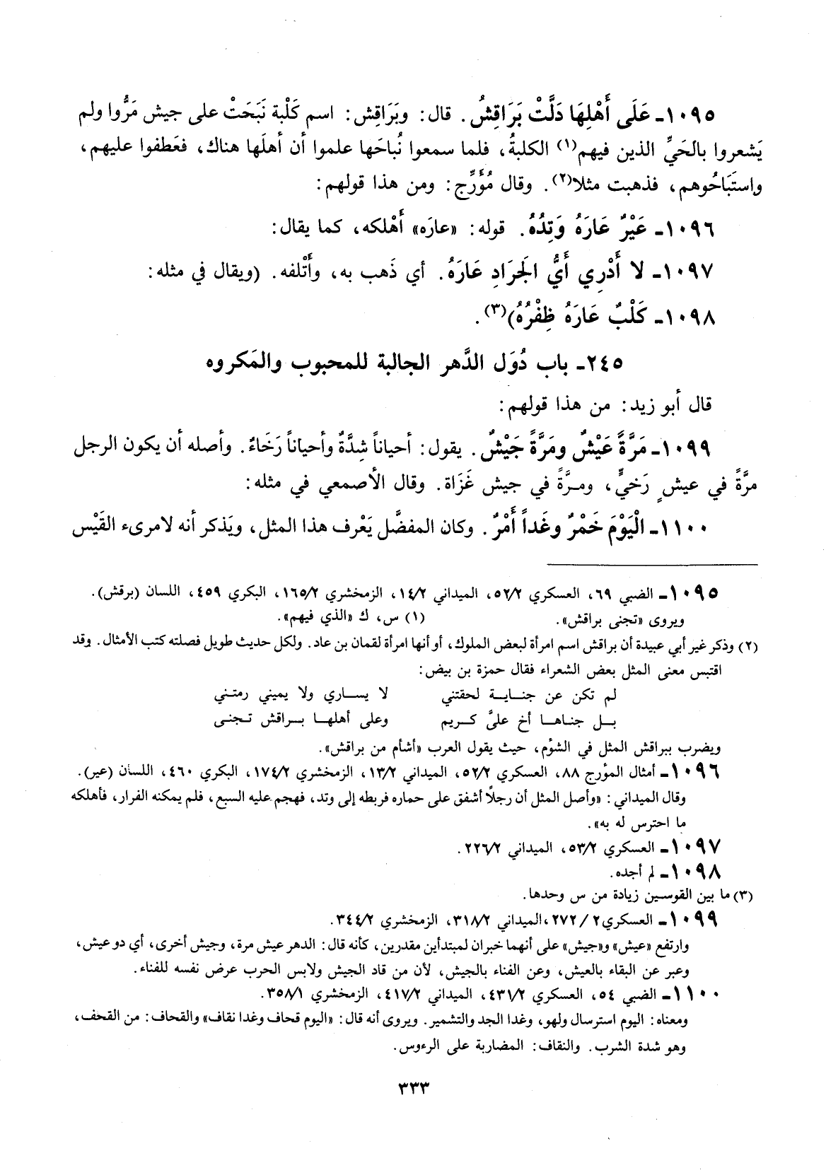 قال أبو زَيد: من هذا قولهم: مرة عيش ومرة جيش.