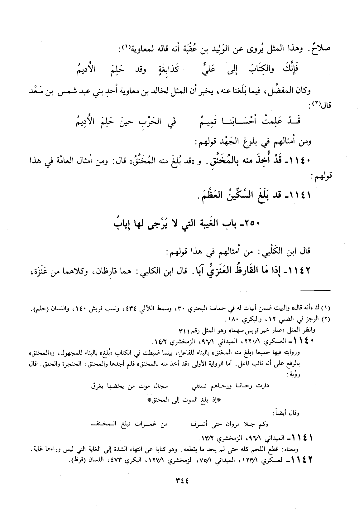 صلاح. وهذا المثل يروى عن الوليد بن عقبة أنّه قاله لمعاوية: