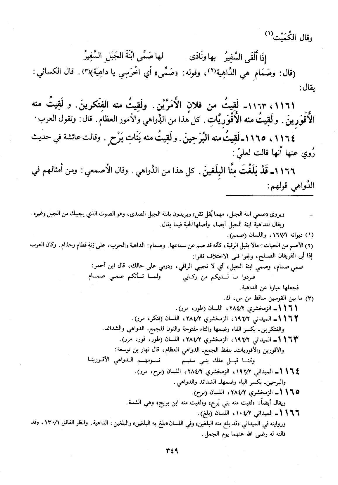 قال: وصمام هي الداهية، وقوله: " صمي أي اخرسي يا داهية ". قال الكسائي: يقال:، - لقيت من فلان الأمرين ولقيت منه الفتكرين. ولقيت منه الأقورين. ولقيت منه الأقوريات.