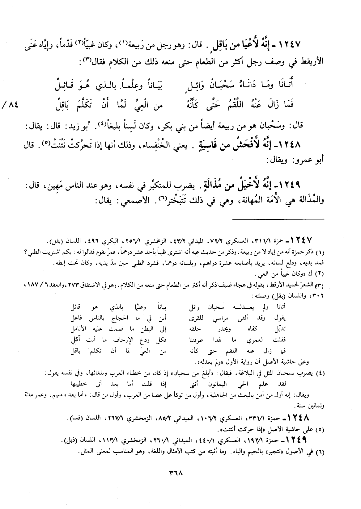 قال: وسبحان هو من ربيعة أيضاً من بني بكر، وكان لسناً بليغاً. أبو زيد: قال: يقال: إنه لأفحش من فاسيةٍ.