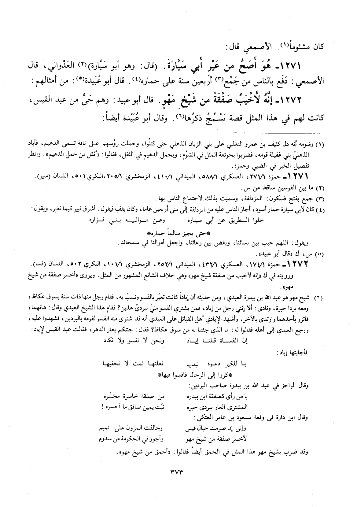 قال: وهو أبو سيارة العدواني، قال الأصمعي: دفع بالناس من جمع أربعين سنة على حماره. قال أبو عبيدة: من أمثالهم: إنَّه لأخيب صفقة من شيخ مهوٍ.