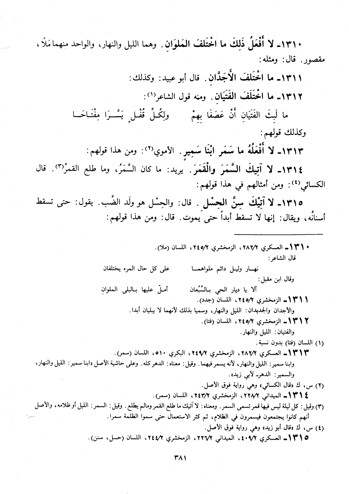 وكذلك قولهم: لا أفعله ما سمر ابنا سميرٍ الأموي: ومن هذا قولهم: لا آتيك السمر والقمر.