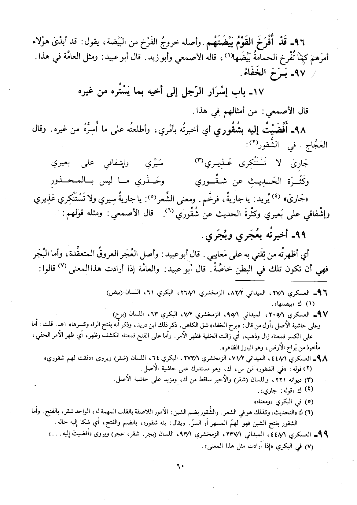 أي أظهرته من ثقتي به على معايبي. قال أبو عبيد: وأصل العجر العروق المتعقدة، وأما البجر فهي أن تكون تلك في البطن خاصة. قال أبو عبيد: والعامة إذا أرادت هذا المعنى قالوا:
