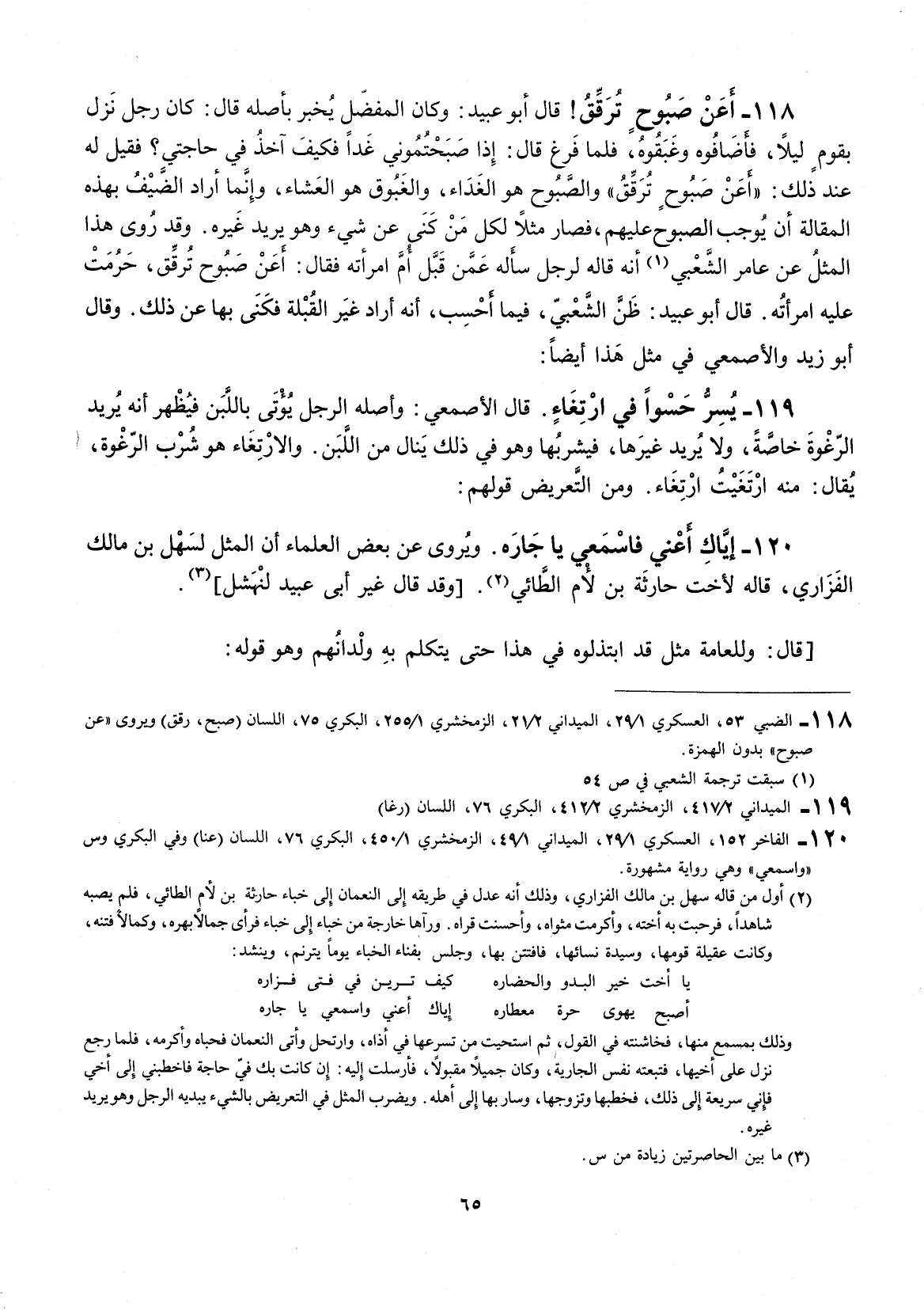 أعن صبوح ترقق! قال أبو عبيد: وكان المفضل يخبر بأصله قال: كان رجل نزل بقوم ليلاً فأضافوه وغبقوه، فلما فرغ قال: إذا صبحتموني غداً فكيف آخذ في حاجتي؟ فقيل له عند ذلك: " أعن صبوحٍ ترقق " والصبوح هو الغداء والغبوق هو العشاء، وإنما أراد الضيف بهذه المقالة أن يوجب الصبوح عليهم، فصار مثلاً لكل من كنى عن شيء وهو يريد غيره. وقد روى هذا المثل عن عامر الشعبي أنه قاله لرجل سأله عمن قبَّل أم امرأته فقال: أعن صبوح ترقق، حرمت عليه امرأته. قال أبو عبيد: طن الشعبي، فيما أحسب، أنه أراد غير القبلة فكنى بها عن ذلك. وقال أبو زيد والأصمعي في مثل هذا أيضاً: يس حسواً في ارتغاء.
