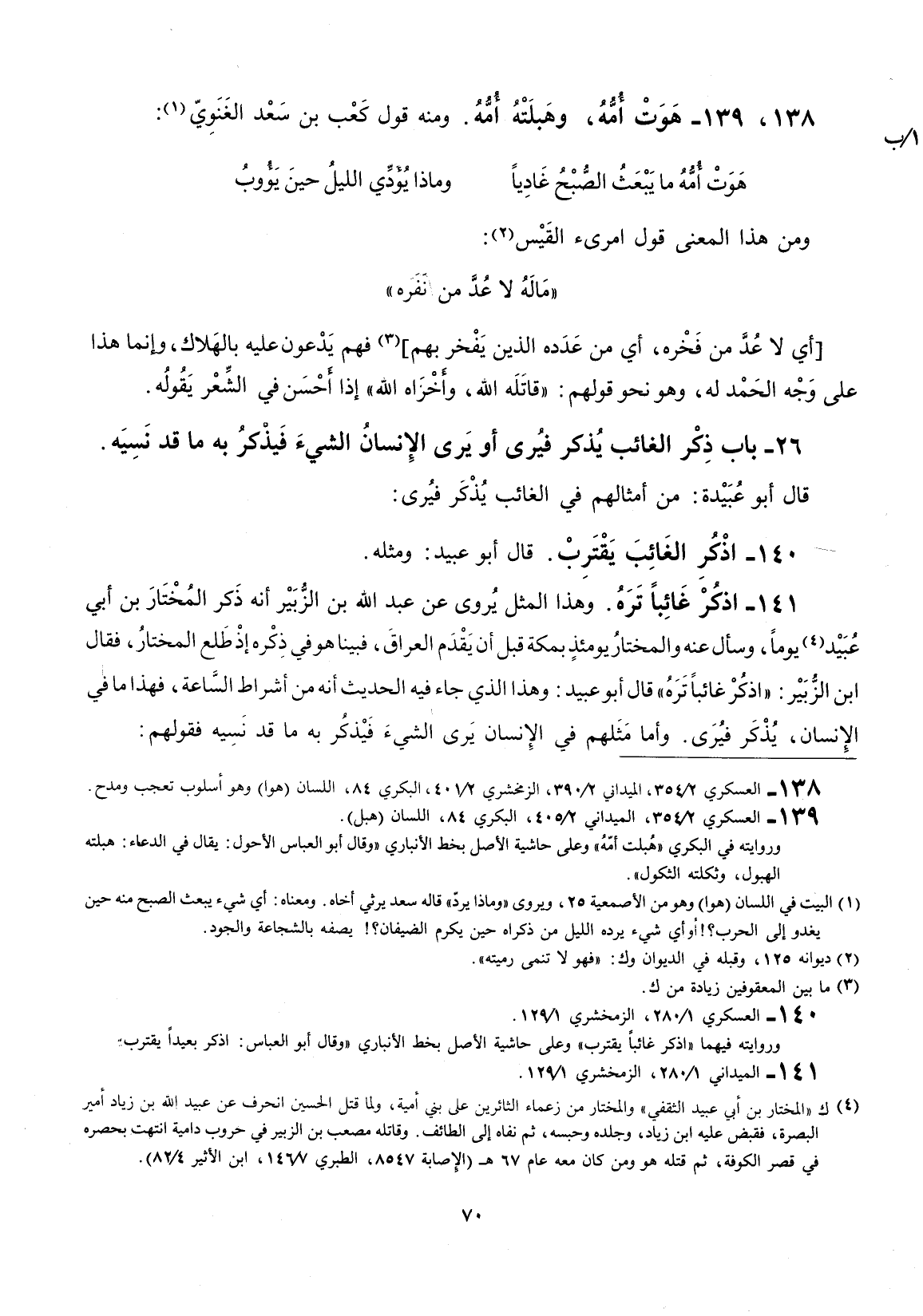 ومن هذا المعنى قول امرئ القيس: ماله ما عد من نفره أي لا د من فخره، أي من عدده الذين يفخر بهم فهم يدعون عليه بالهلاك، وإنّما هذا على وجه الحمد له، وهو نحو قولهم: " قاتله الله، وأخزاه الله " إذا أحسن في الشعر يقوله.