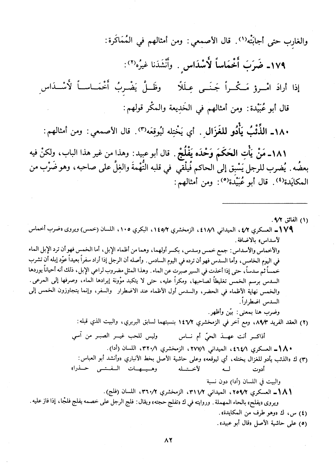 والغارب حتى أجابته. قال الأصمعي: ومن أمثالهم في المماكرة: ضرب أخماسا لأسداس.