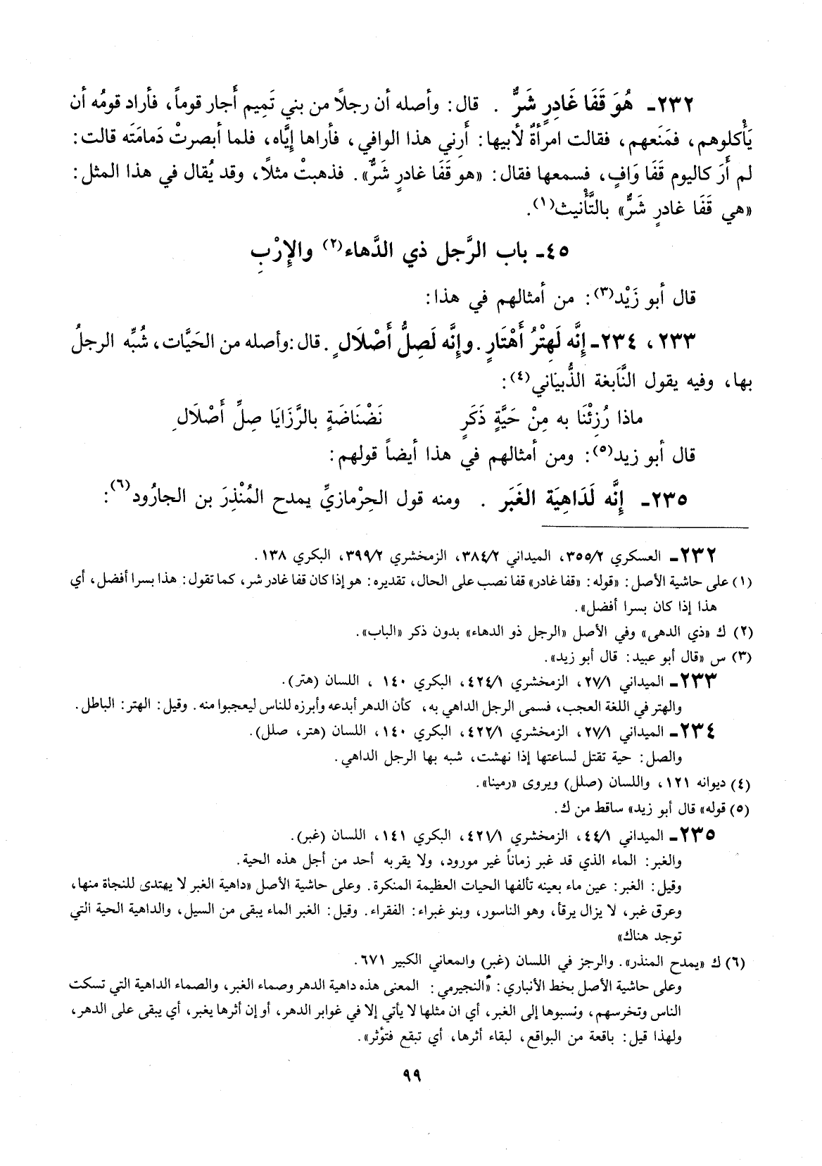 قال أبو زيد: ومن أمثالهم في هذا أيضاً قولهم: إنّه لداهية الغبر.