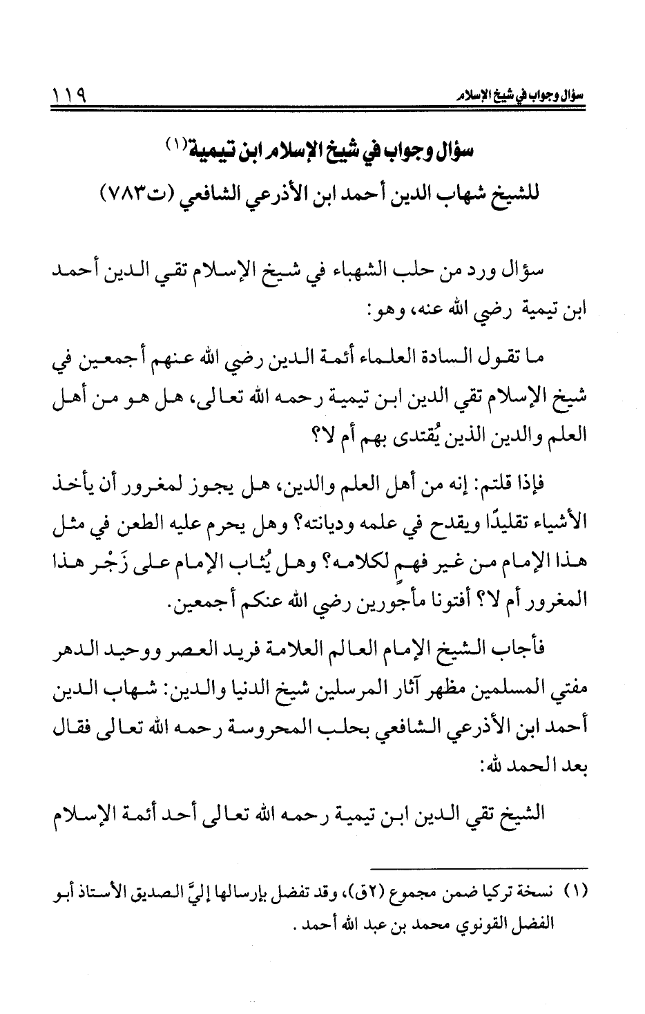 سؤال وجواب في شيخ الإسلام ابن تيمية (¬1)