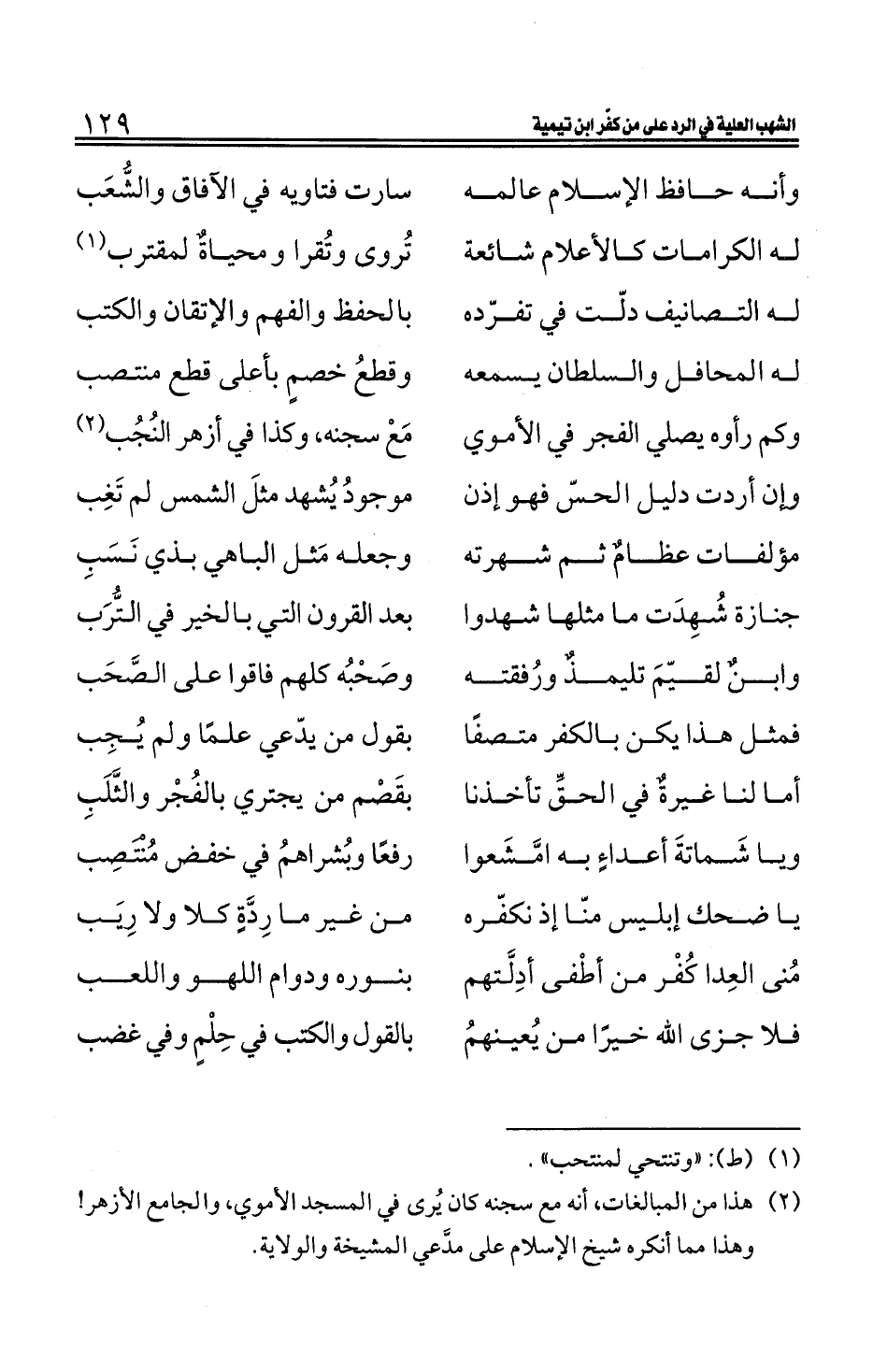 وأنه حافظ الإسلام عالمه ... سارت فتاويه في الآفاق والشُّعَب