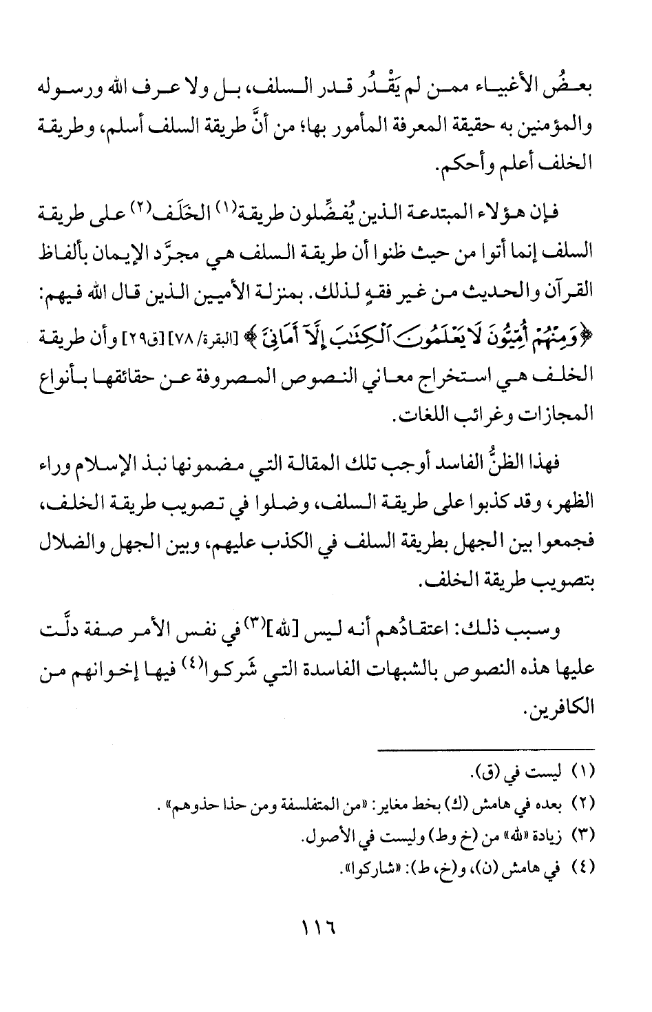 فإن هؤلاء المبتدعة الذين يفضلون طريقة (1) الخلف (2) على طريقة