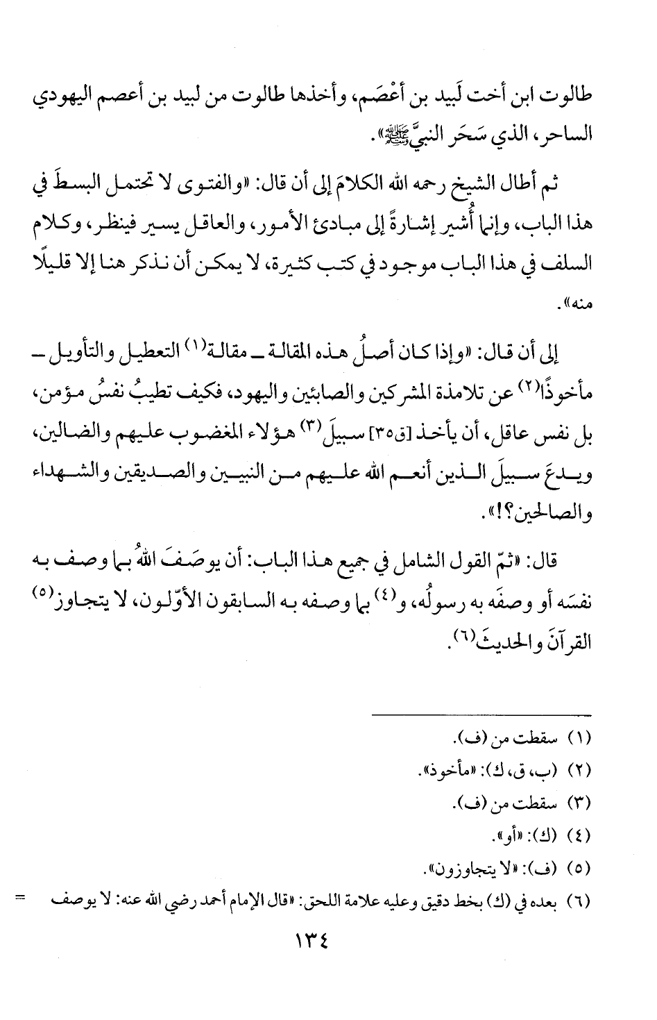نفسه او وصفه به رسوله، و (4) بما وصفه به السابقون الاولون، لا يتجاوز (5)