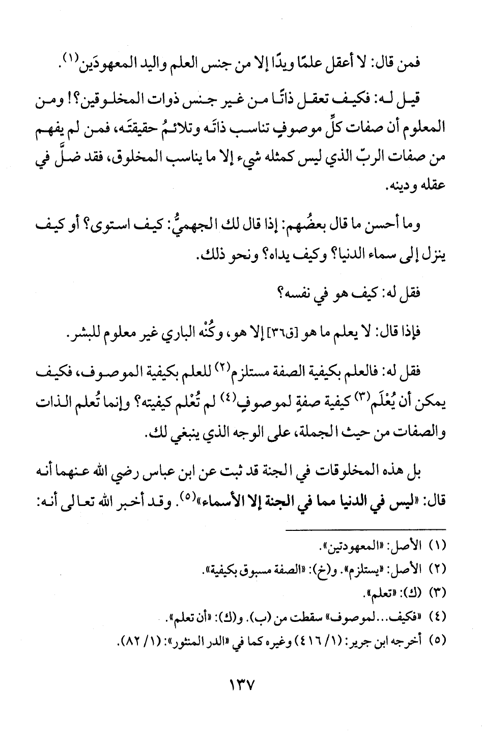 يمكن ان يعلم (3) كيفية صفة لموصوف (4) لم تعلم كيفيته؟ وانما تعلم الذات