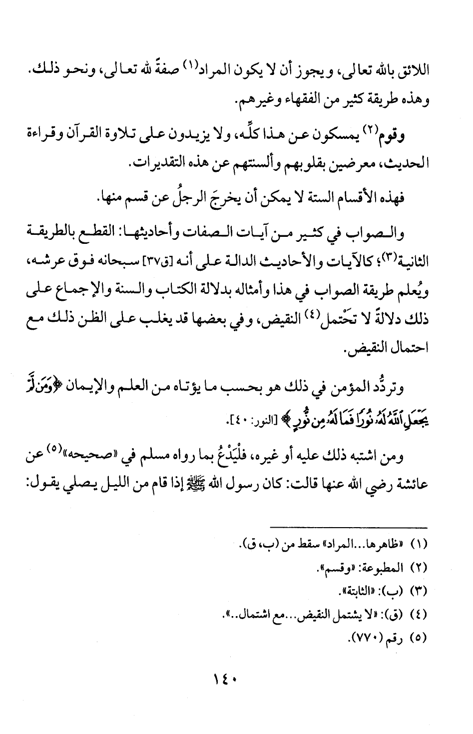 والصواب في كثير من ايات الصفات و حاديثها: القظع بالطريقة