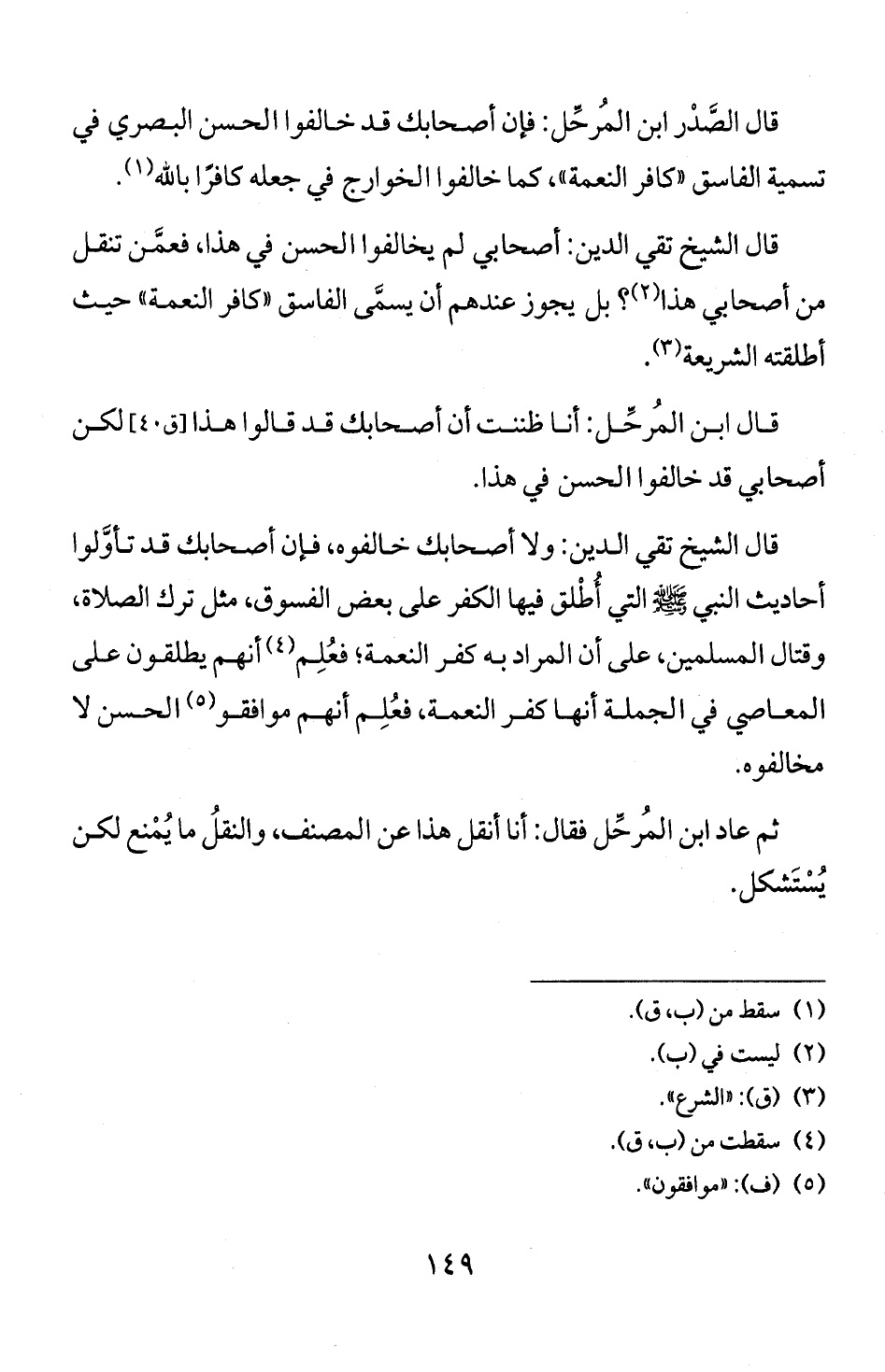 قال الصدر ابن المرحل: فان أصحابك قد خالفوا الحسن البصري في