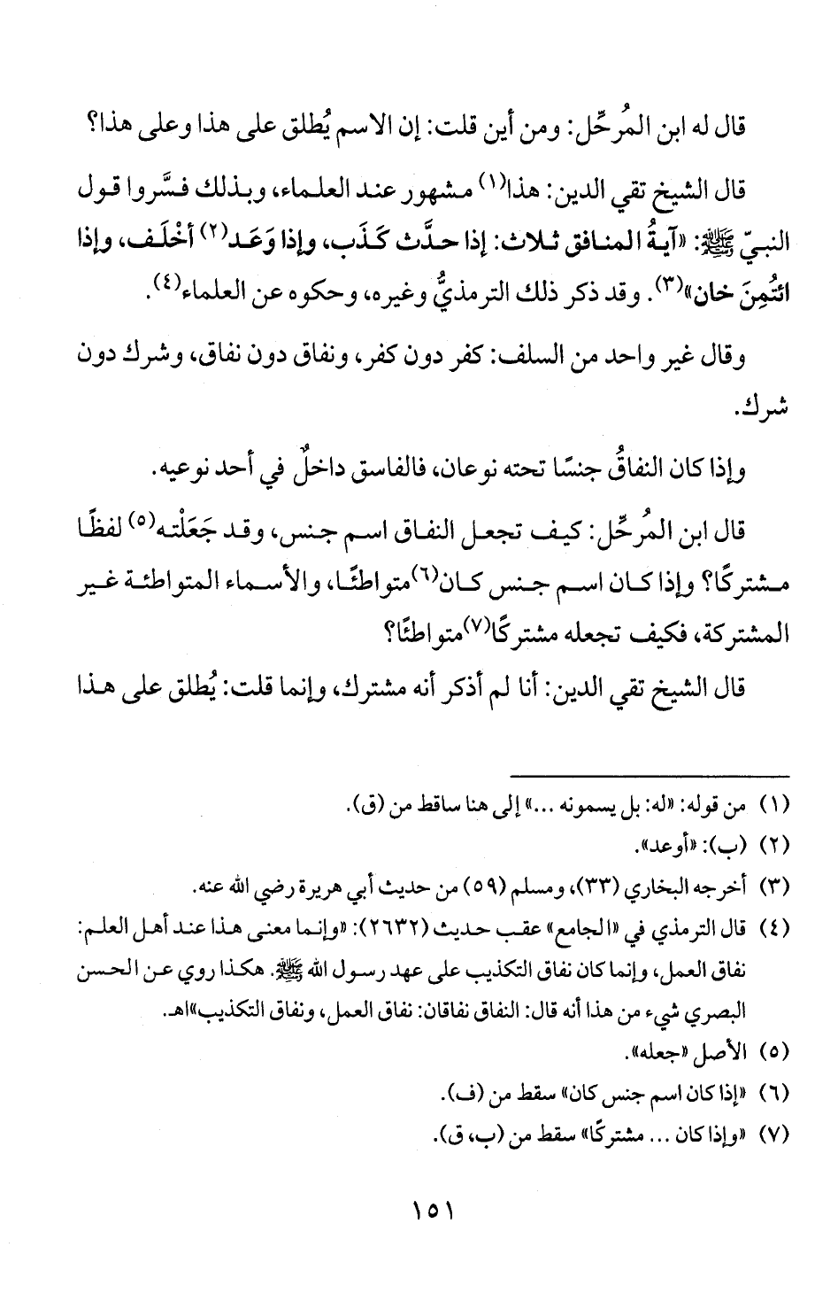 قال ابن المرحل: كيف تجعل النفاق اسم جنس، وقد جعلته (5) لفظا