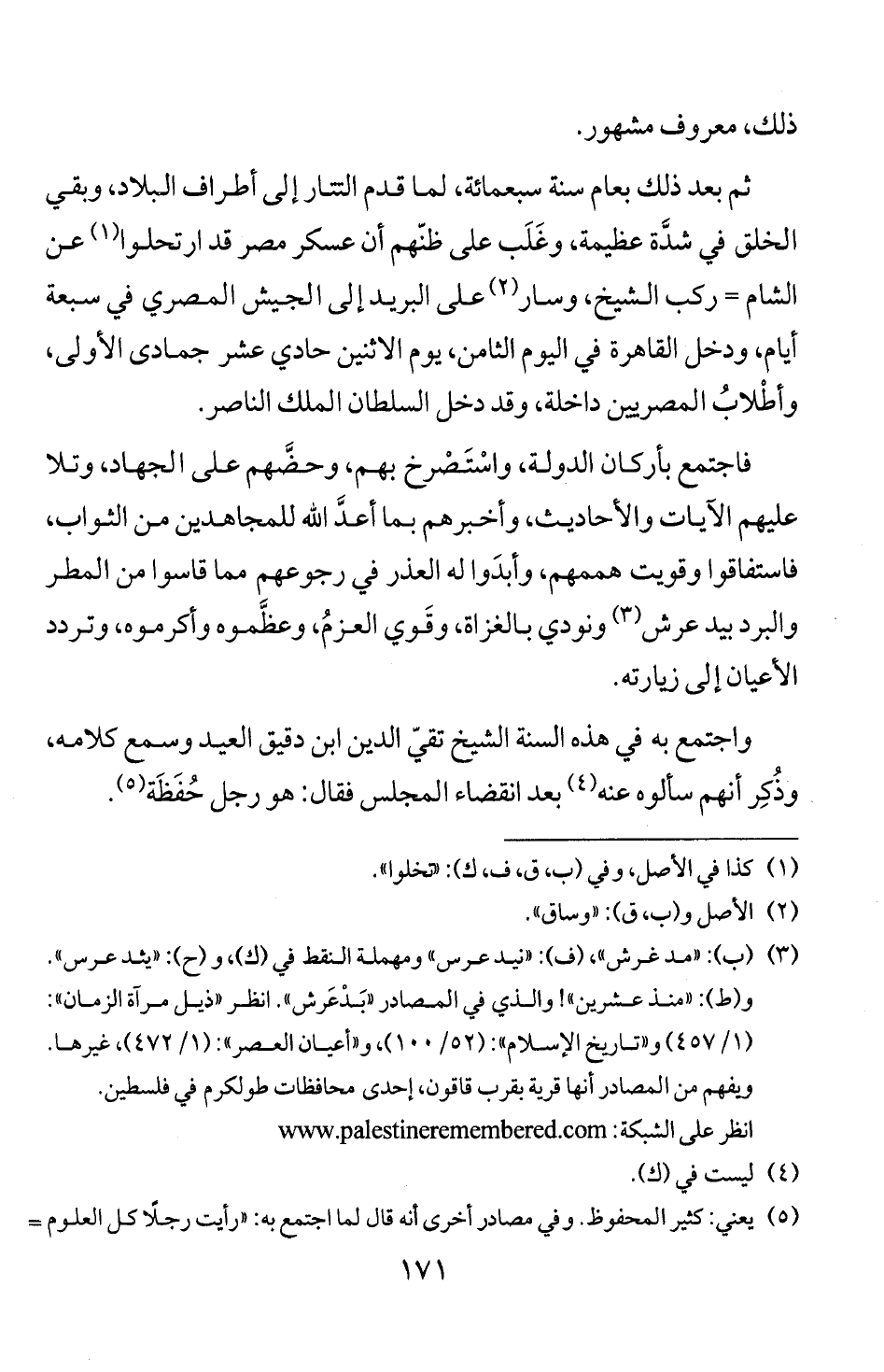 والبرد بيد عرش*3) ونودي بالغزاة، وقوي العزم، وعظموه وأكرموه، وتردد