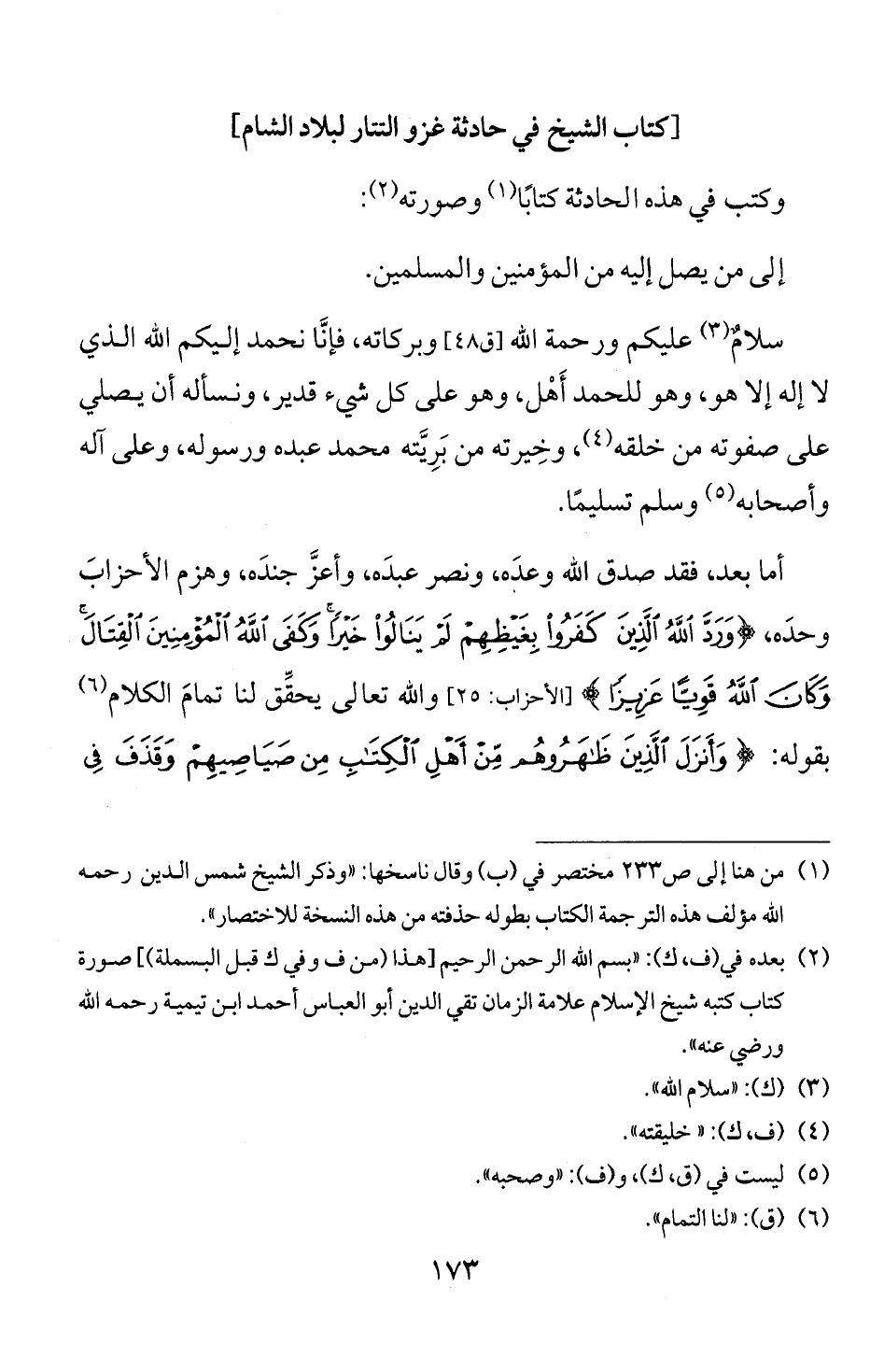 [كتاب الشيخ في حادثة غزو التتار لبلاد الشام]