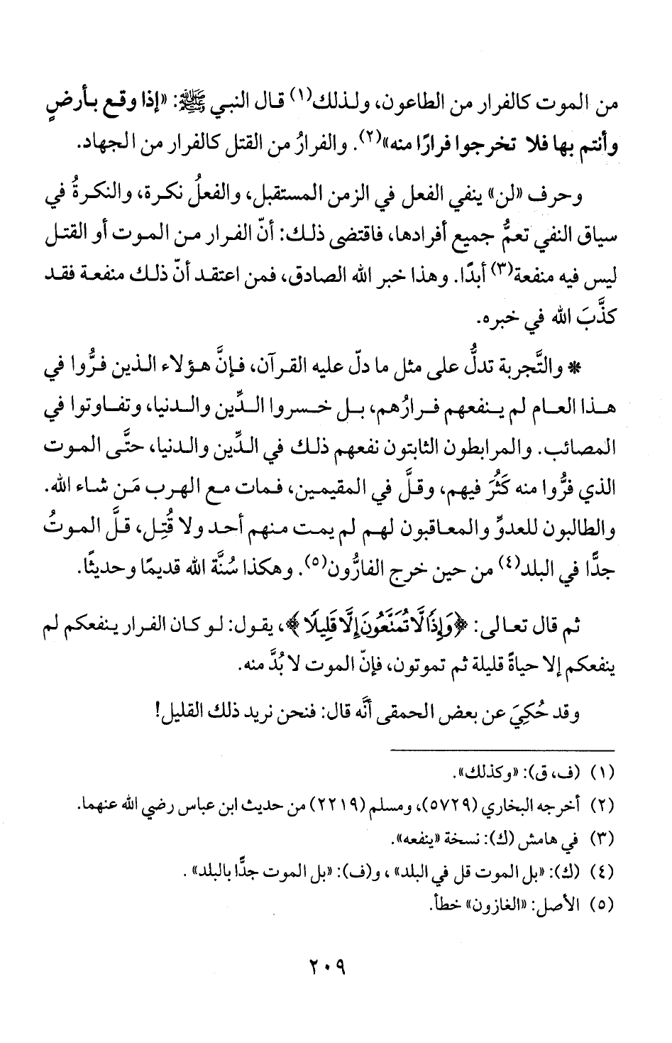وانتم بها فلا تخوجو] فرارا منه " (2). والفرار من القتل كالفرار من ا لجهاد.