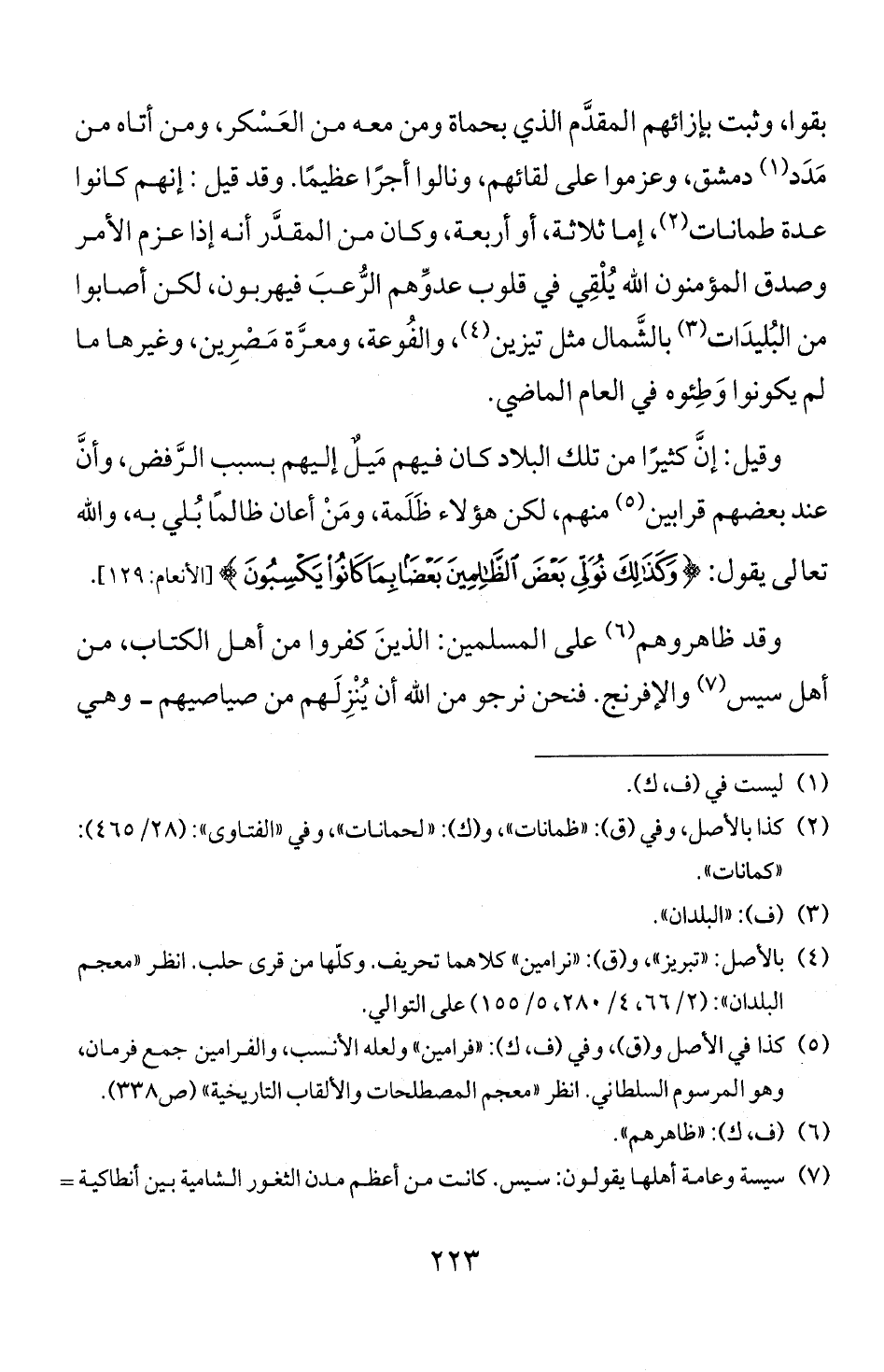 أهل سيس (7) والافرنج. فنحن نرجو من الله ان ينزلهم من صياصيهم - وهي