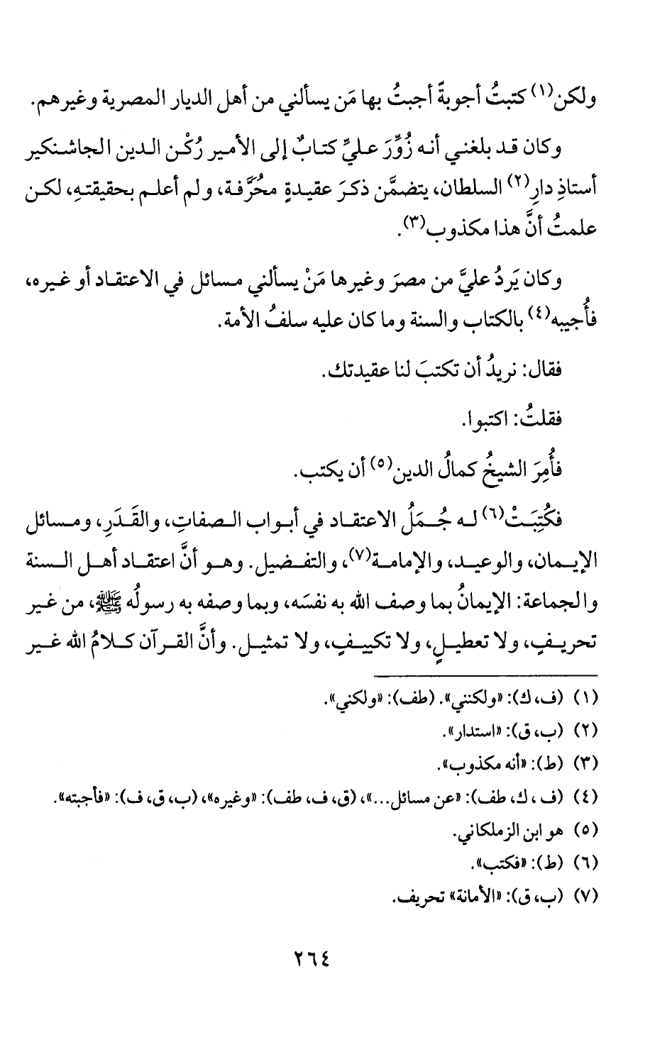 فكتبت (6) له جمل الاعتقاد في أبواب الصفات، والقدر، ومسائل