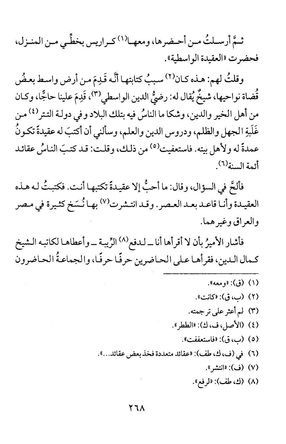 وقلت لهم: هذه كان (2) سبب كتابتها آنه قدم من أرض واسط بعض