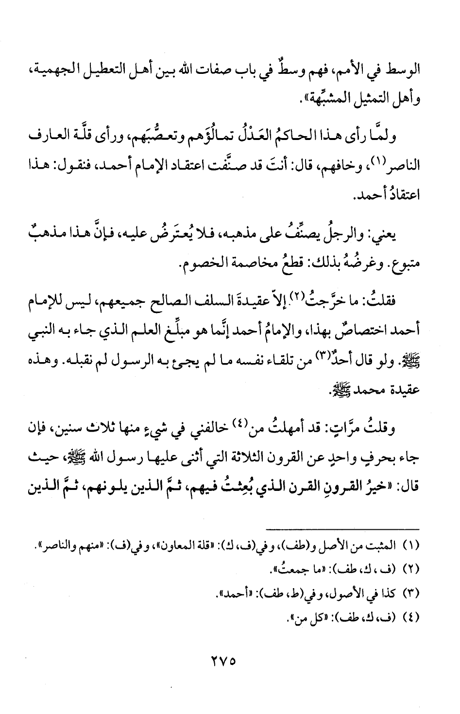 جاء بحرف واحد عن القرون الثلاثة التي أثنى عليها رسول الله! و، حيث
