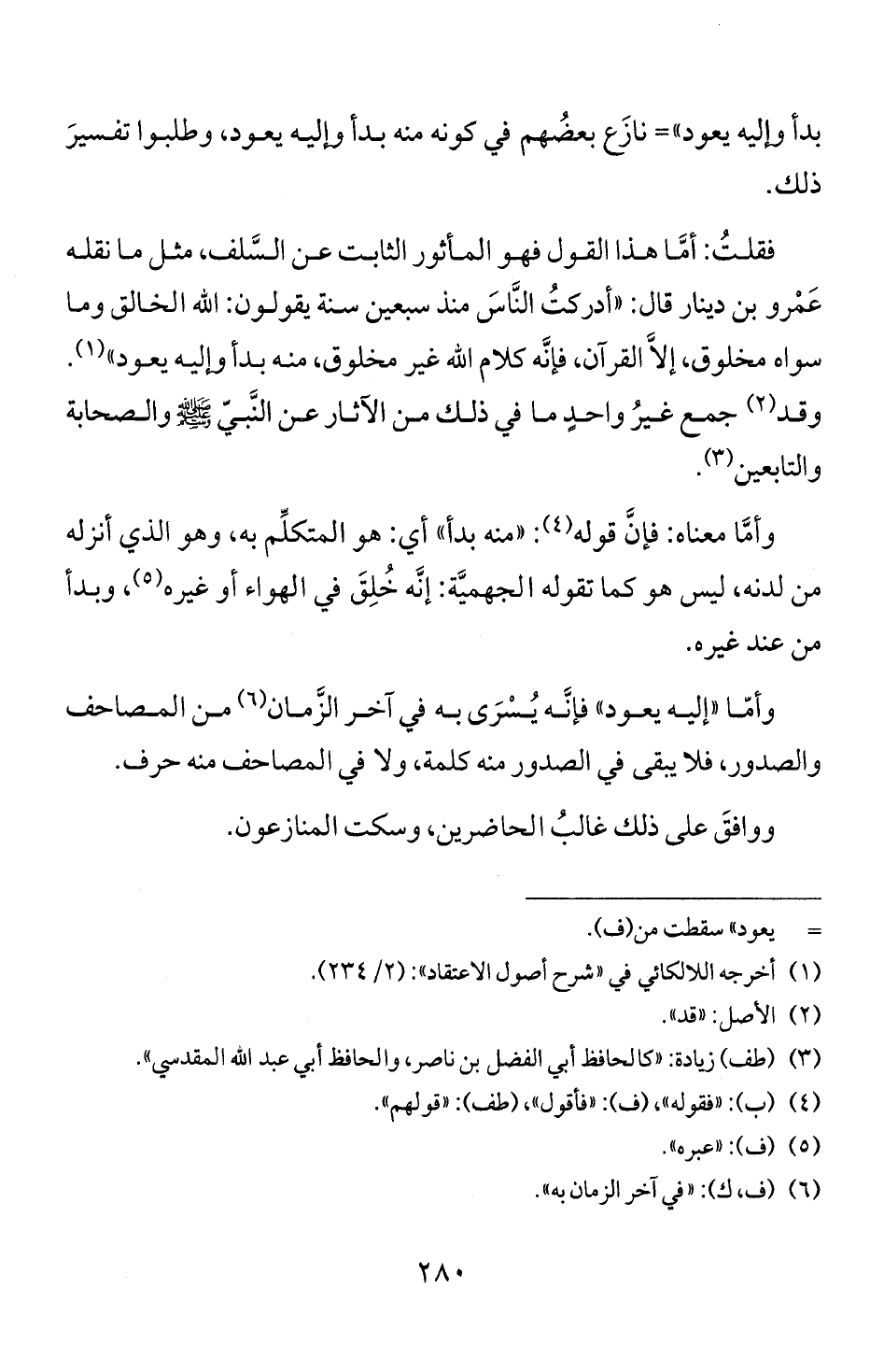 بدأ وإليه يعود"= نازع بعضهم في كونه منه بدأ وإليه يعود، وطلبوا تفسير