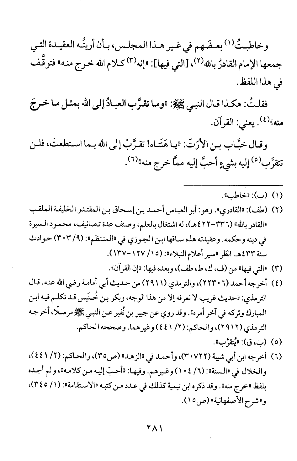 جمعها الامام القادر بالله (2)، [التي فيها]: " إنه (3) كلام الله خرج منه" فتوقف