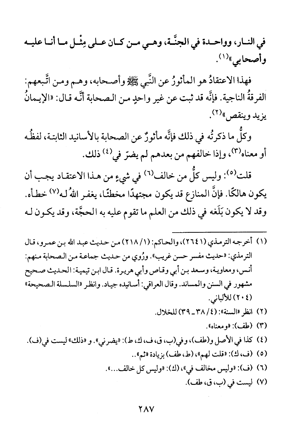 الفرقة الناجية. فانه قد ثبت عن غير واحد من الصحابة انه قال: " الايمان